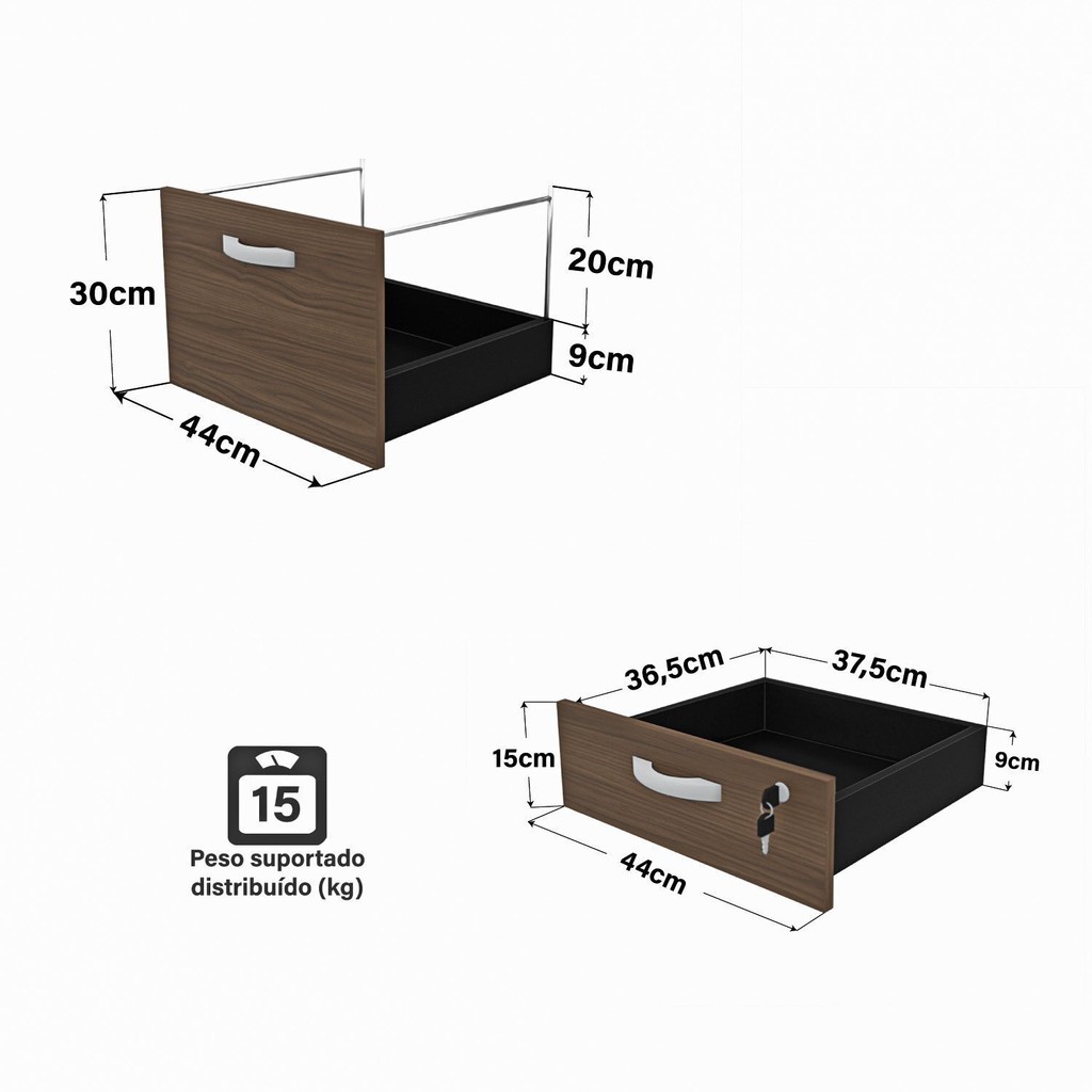 Escrivaninha Mesa Escritório em L com Gaveteiro 3 Gavetas com Chave 120cmx150cm Preto/Marrom