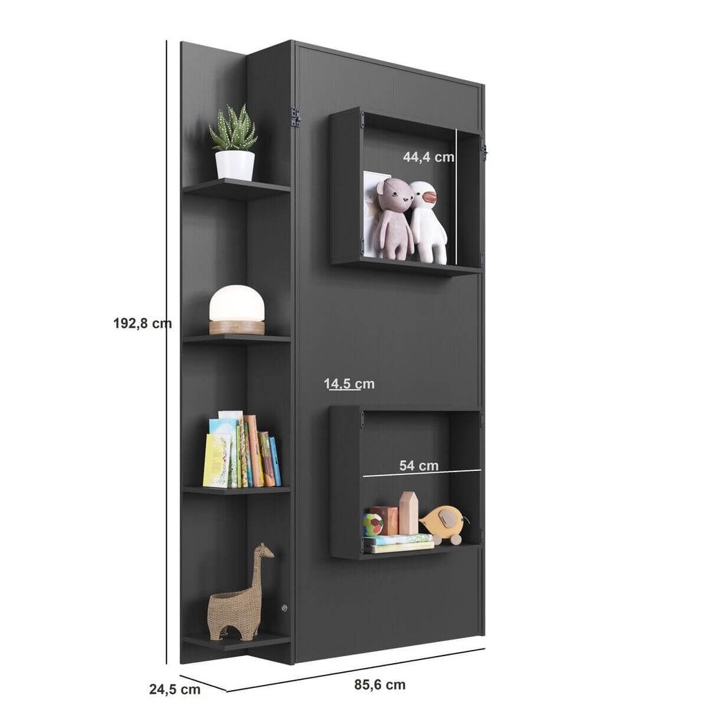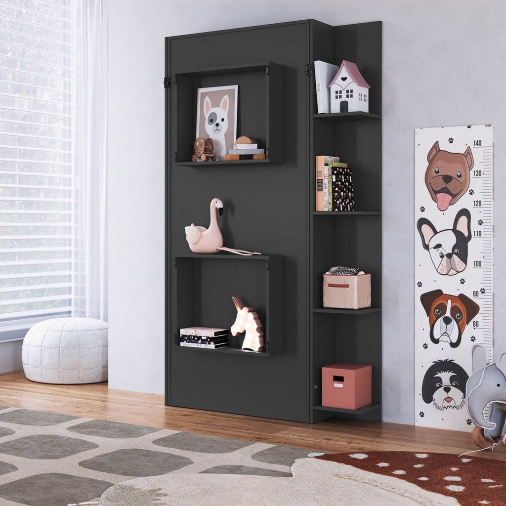 Cama Solteiro Juvenil Articulável Vertical com Estante 80 Vancouver Grafite