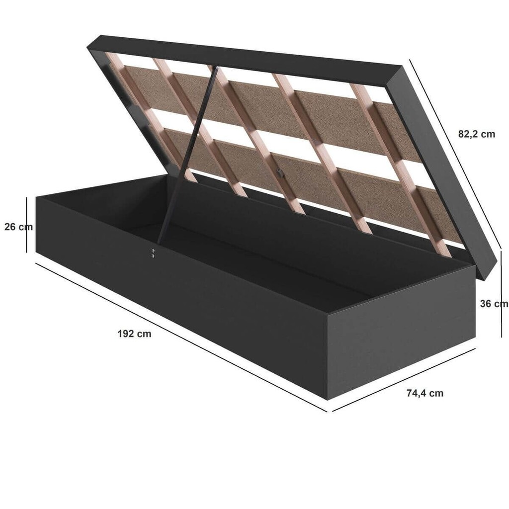 Cama Solteiro Juvenil Box Baú 80 Bogotá Grafite