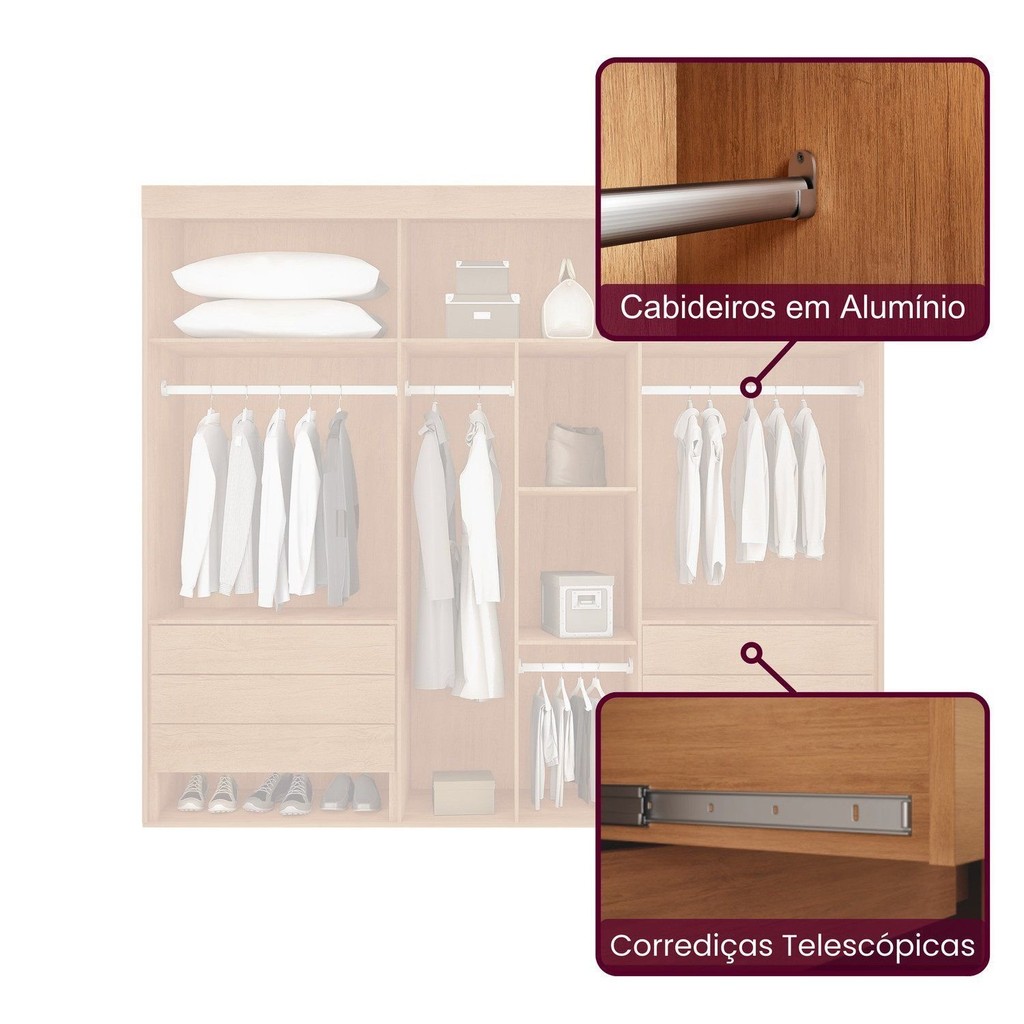 Guarda-roupa Casal 100% Mdf 6 Portas e 6 Gavetas Vision Naturalle
