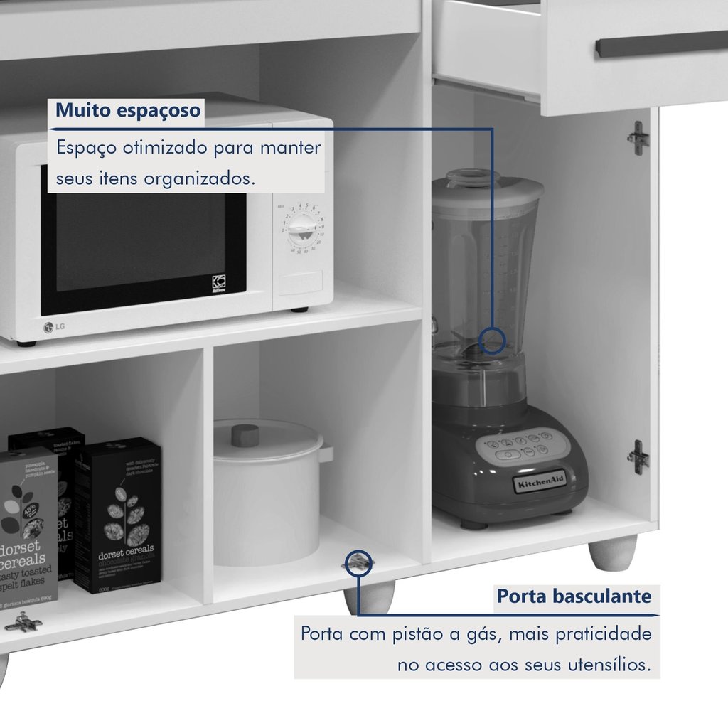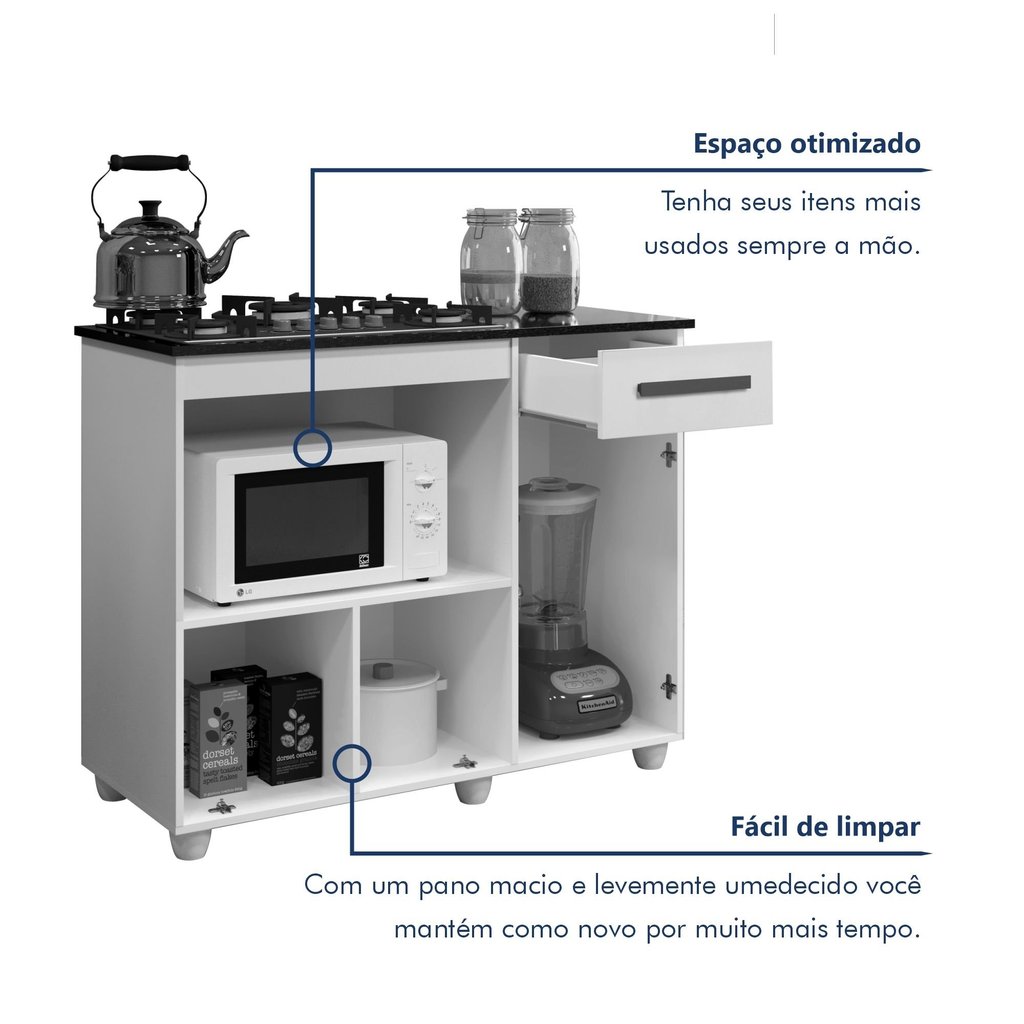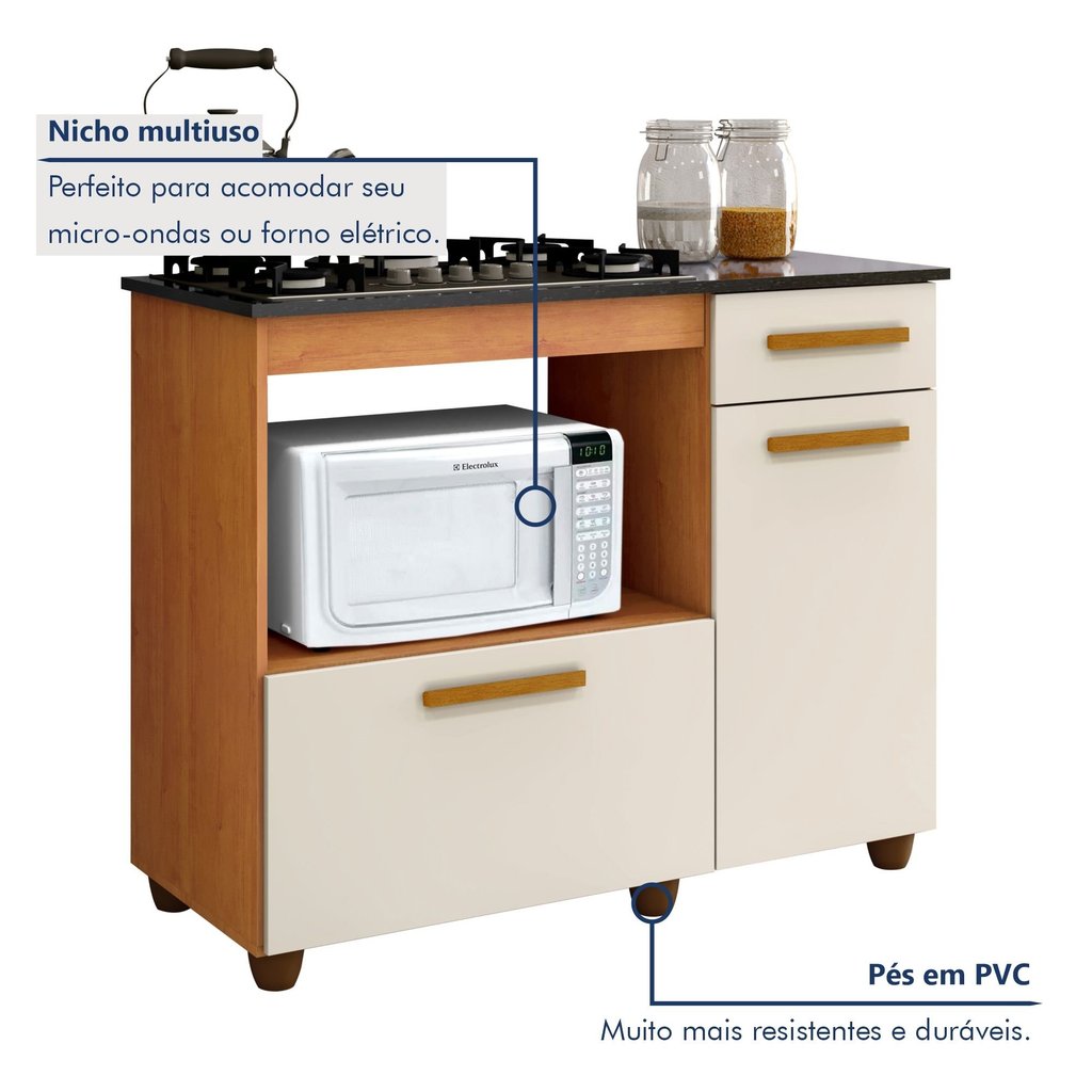 Balcão para Cooktop 2 Portas 1 Gaveta Violeta Nature/Off White
