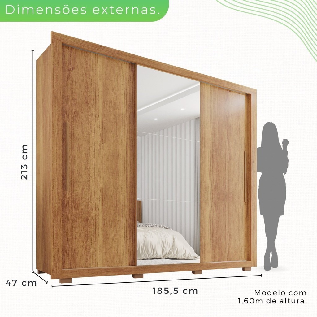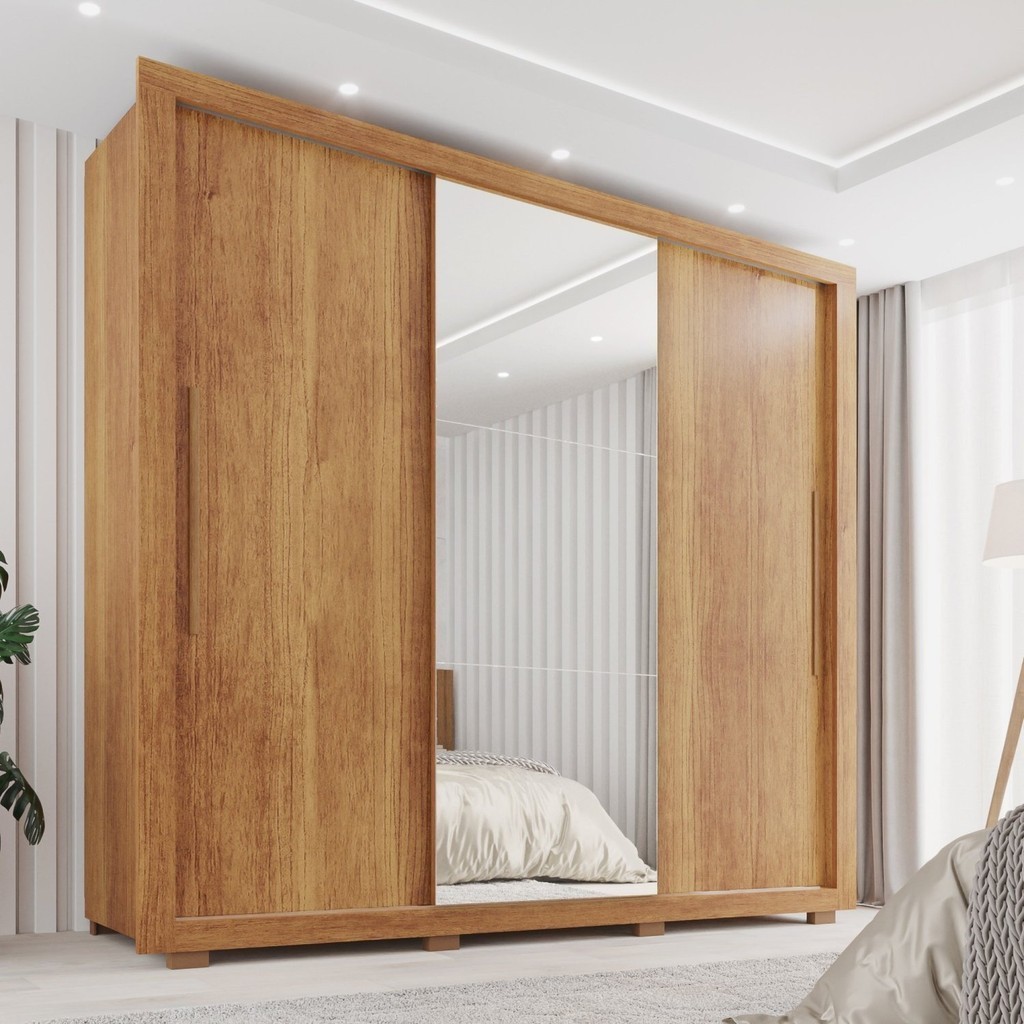 Guarda-roupa Casal com Espelho 3 Portas 4 Gavetas Costa Rica Cinamomo