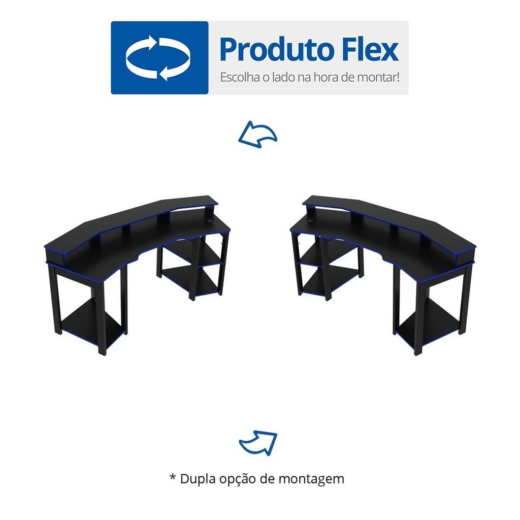 Mesa Gamer Me4167 Preto/Azul