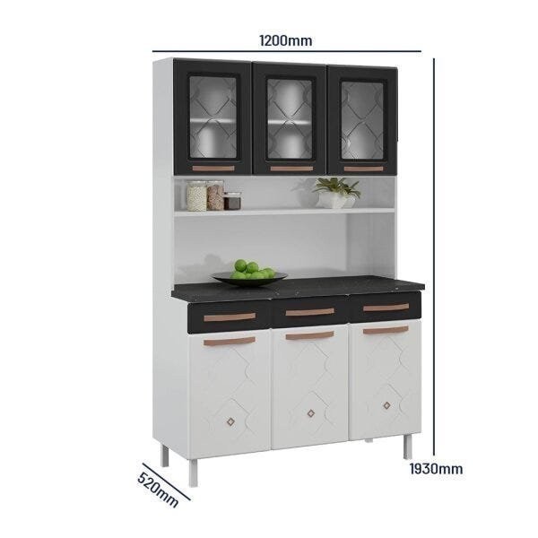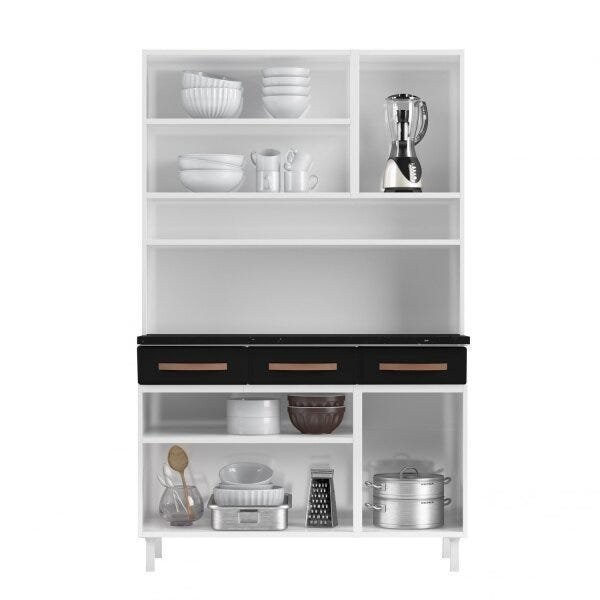 Armário de Cozinha em Aço Triplo 6 Portas 3 Gavetas Mirage New Branco/Preto