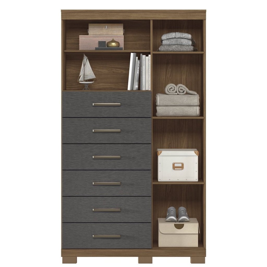 Multi-cômoda 1 Porta 6 Gavetas Marabá com Espelho e Pés Jatoba/Grafite
