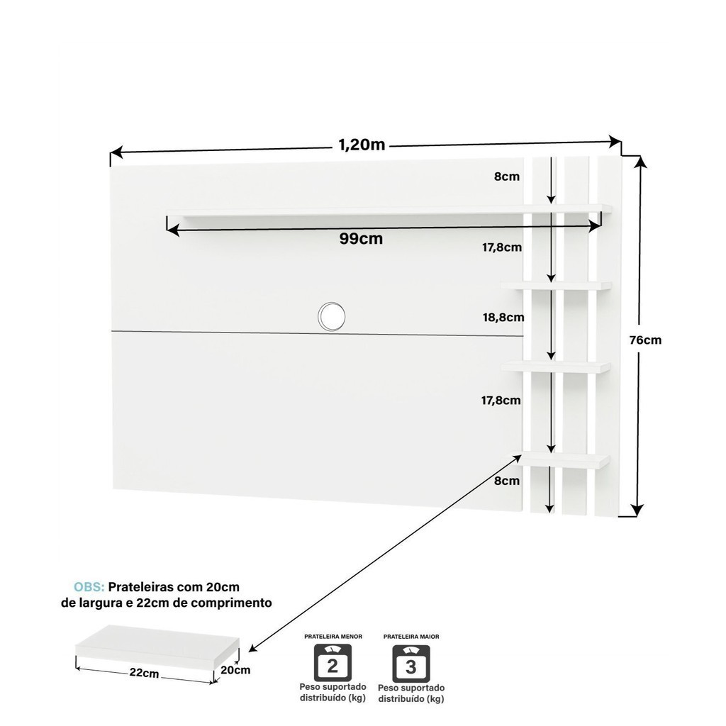 Painel de Tv Ripado até 32 Polegadas com Prateleiras Branco