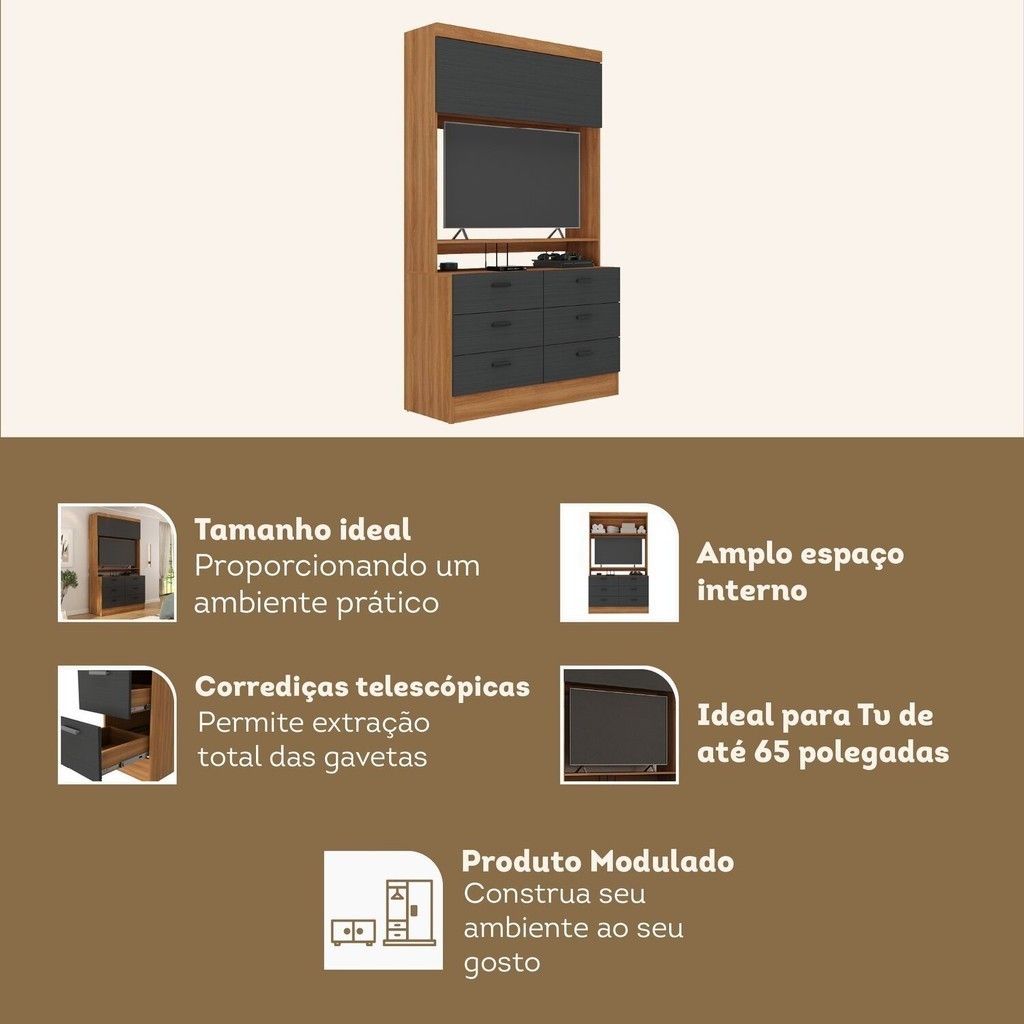 Estante para Tv até 42 Polegadas Viena1 Porta 6 Gavetas Espresso Móveis Nogal/Grafite
