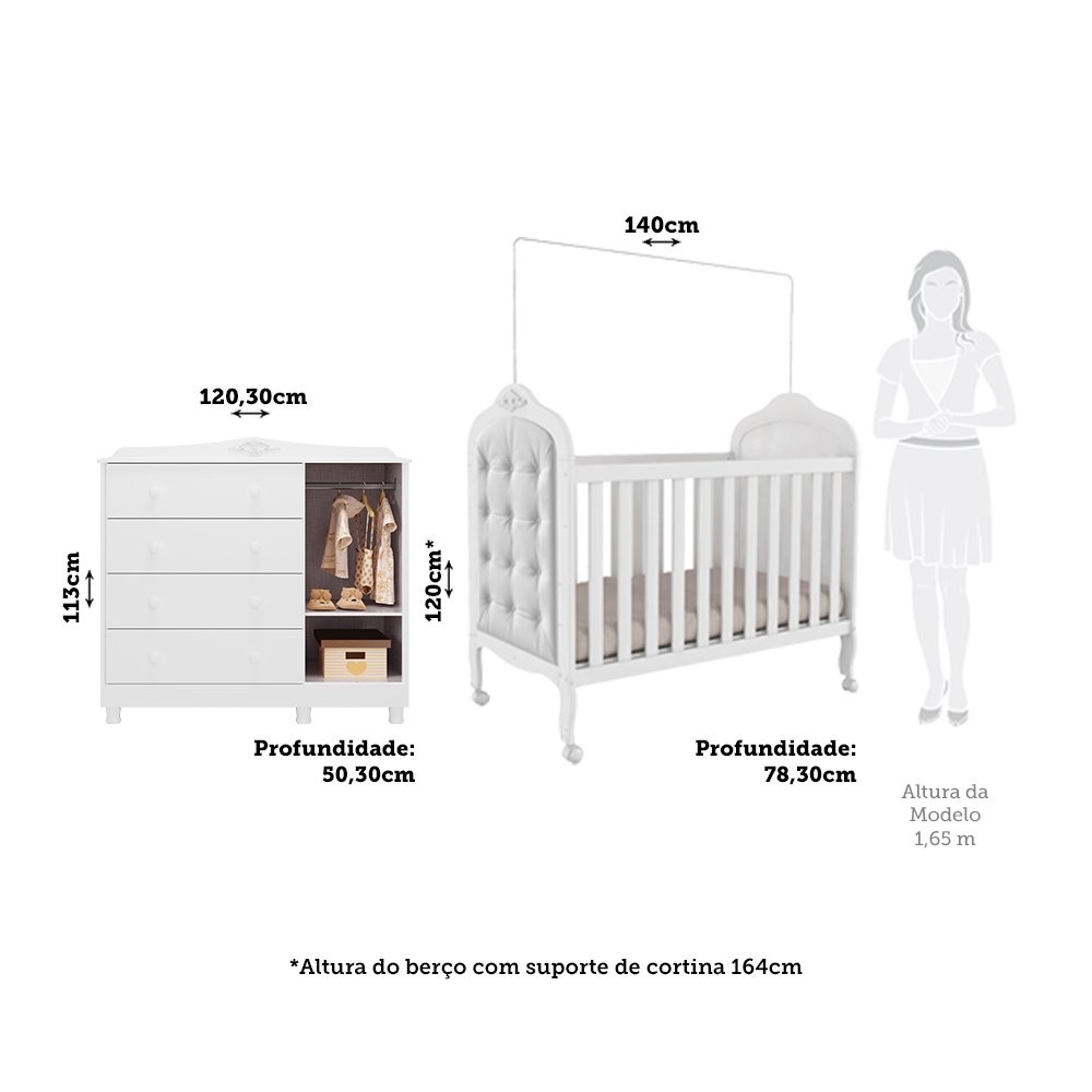 Quarto de Bebê com Cômoda 1 Porta 4 Gavetas e Berço Capitonê 100% Mdf Maya Clássico Espresso Móveis