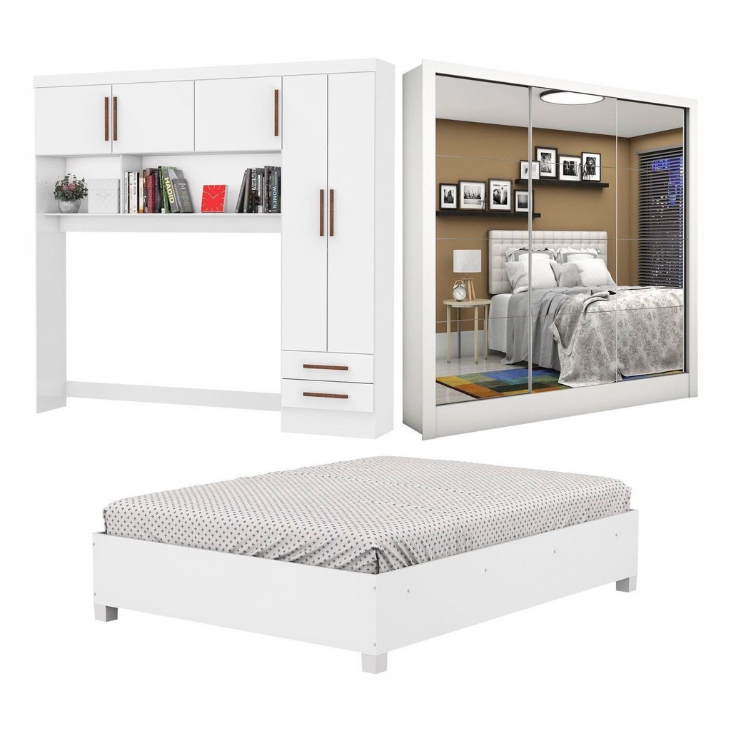 Guarda-roupa Casal Modulado 5 Portas com Cama Santiago 3 Portas Premium 5 Gaveta com Espelho Branco