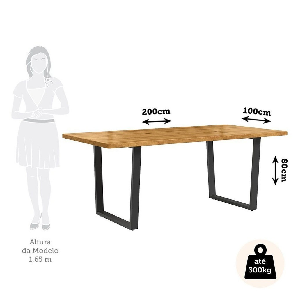 Conjunto Mesa de Jantar 200cm Retangular 2 Bancos em Ferro e Madeira Maciça Savannah Espresso Móveis