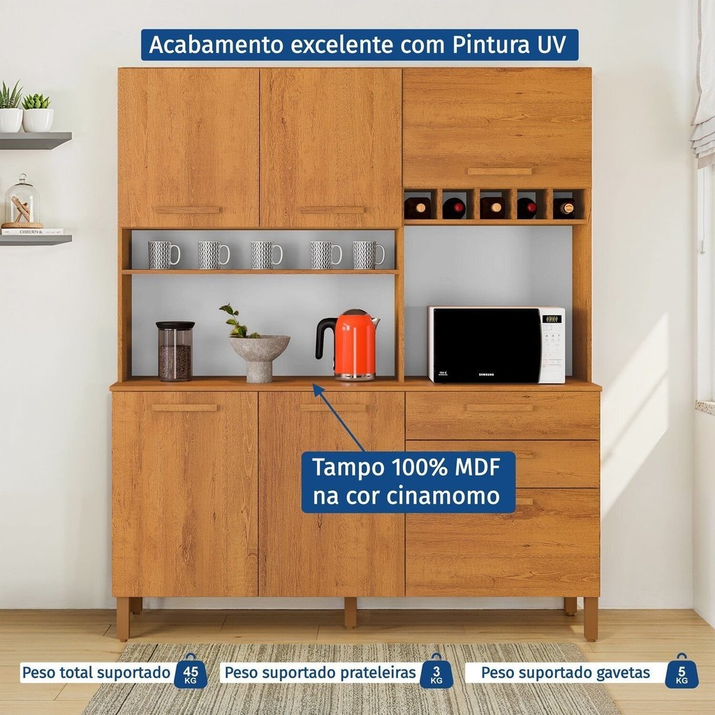 Armário de Cozinha 6 Portas 2 Gavetas 100% Mdf Athenas Espresso Móveis