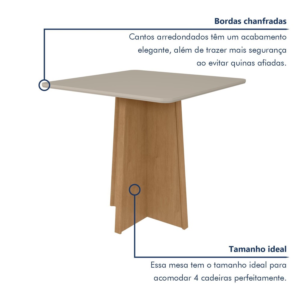 Mesa de Jantar 4 Lugares Quadrada Tampo MDF Celebrare Amêndoa Clean/Off White