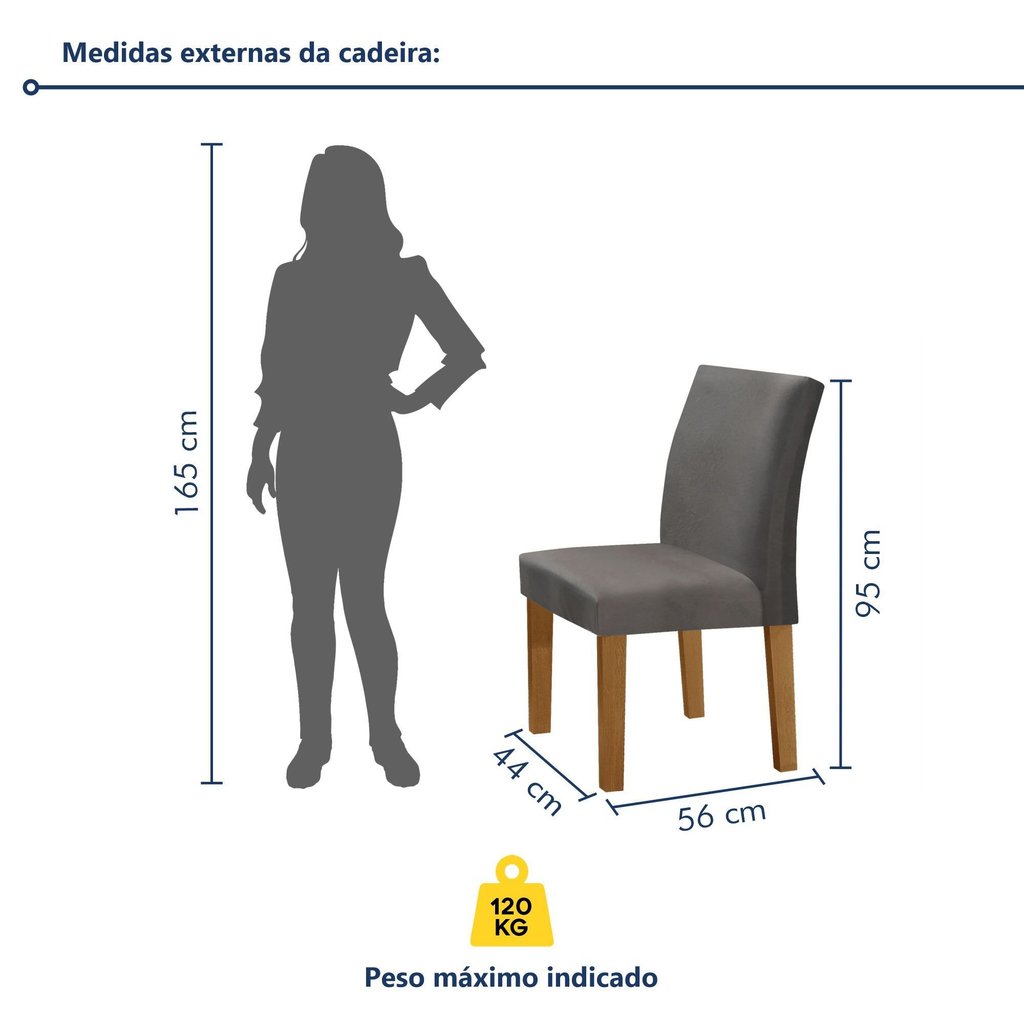 Conjunto Sala de Jantar Mesa 160x80cm Tampo Mdf/vidro com 6 Cadeiras Espanha Yescasa Ypê/Off White/Suede Cinza