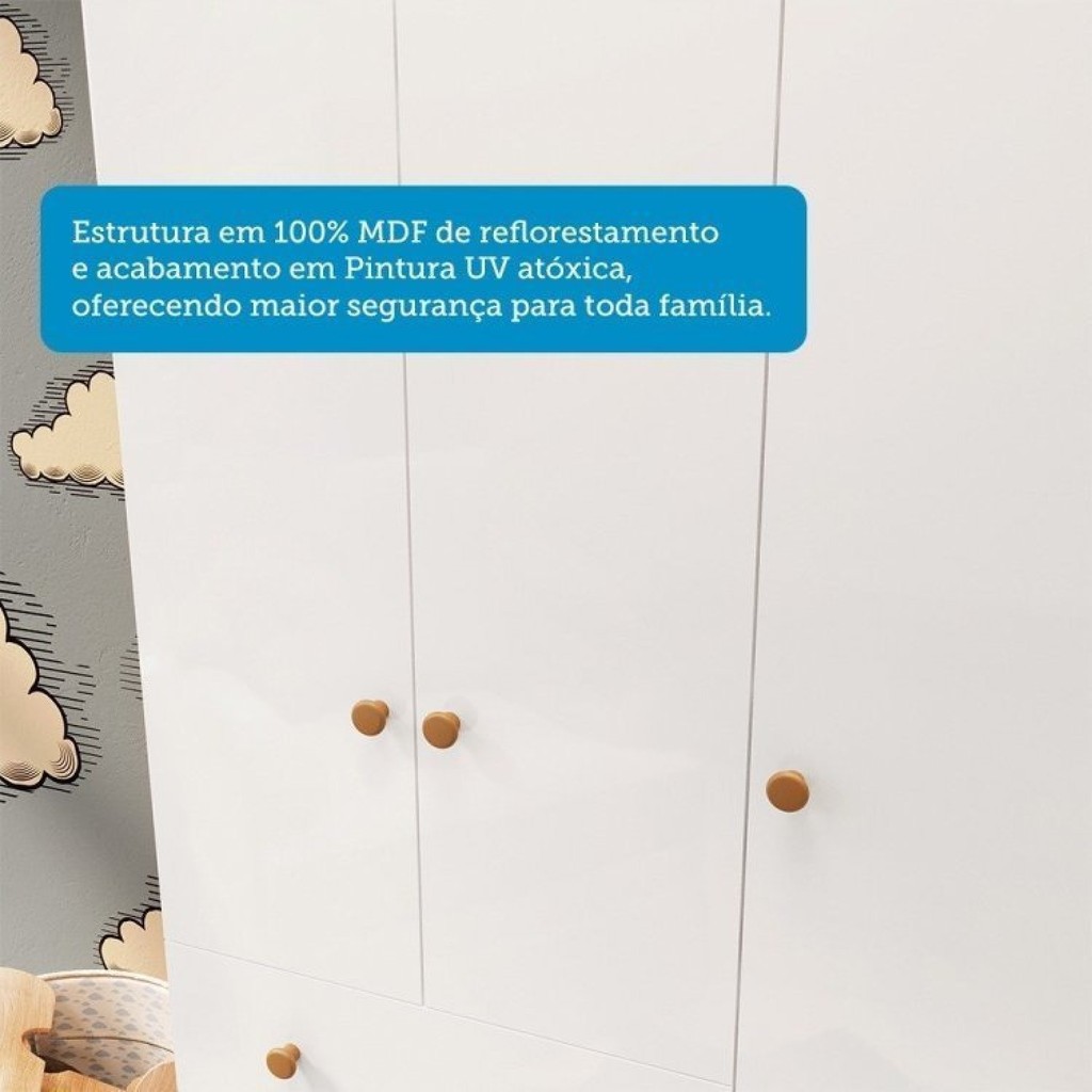 Quarto de Bebê com Guarda Roupas 3 Portas e Berço com Rodízio Mimo 100% Mdf Branco Brilho/Amêndoa