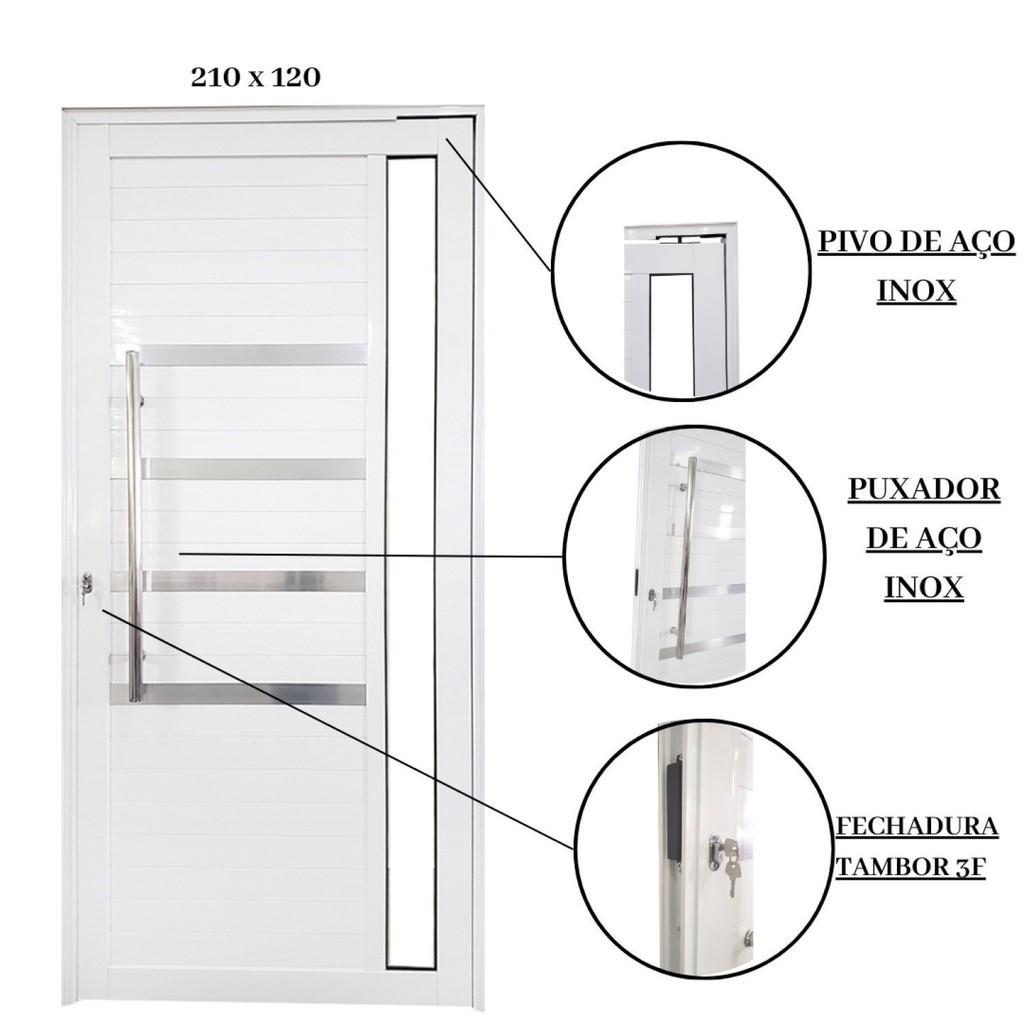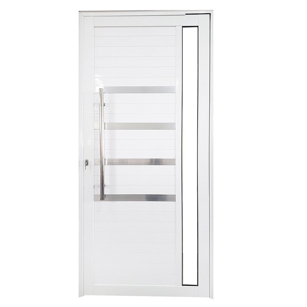 Porta Pivotante de Alumínio 210 X 120cm com Friso e Vidro Linha 30 Esquerda Esquadrias Bergamo Branco