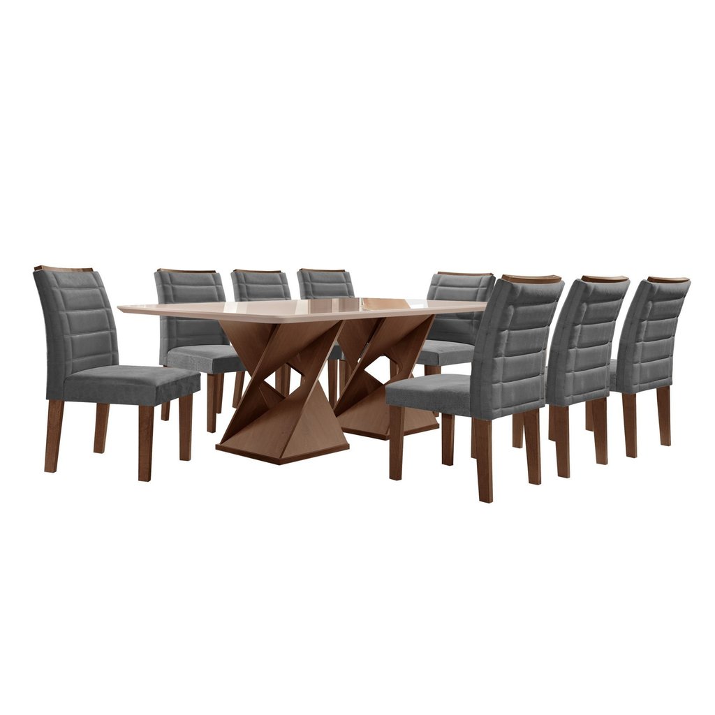 Conjunto Sala de Jantar Genova Tampo Vidro/mdf com 8 Cadeiras Genova Smart Plus Chocolate/Off White/Grafite