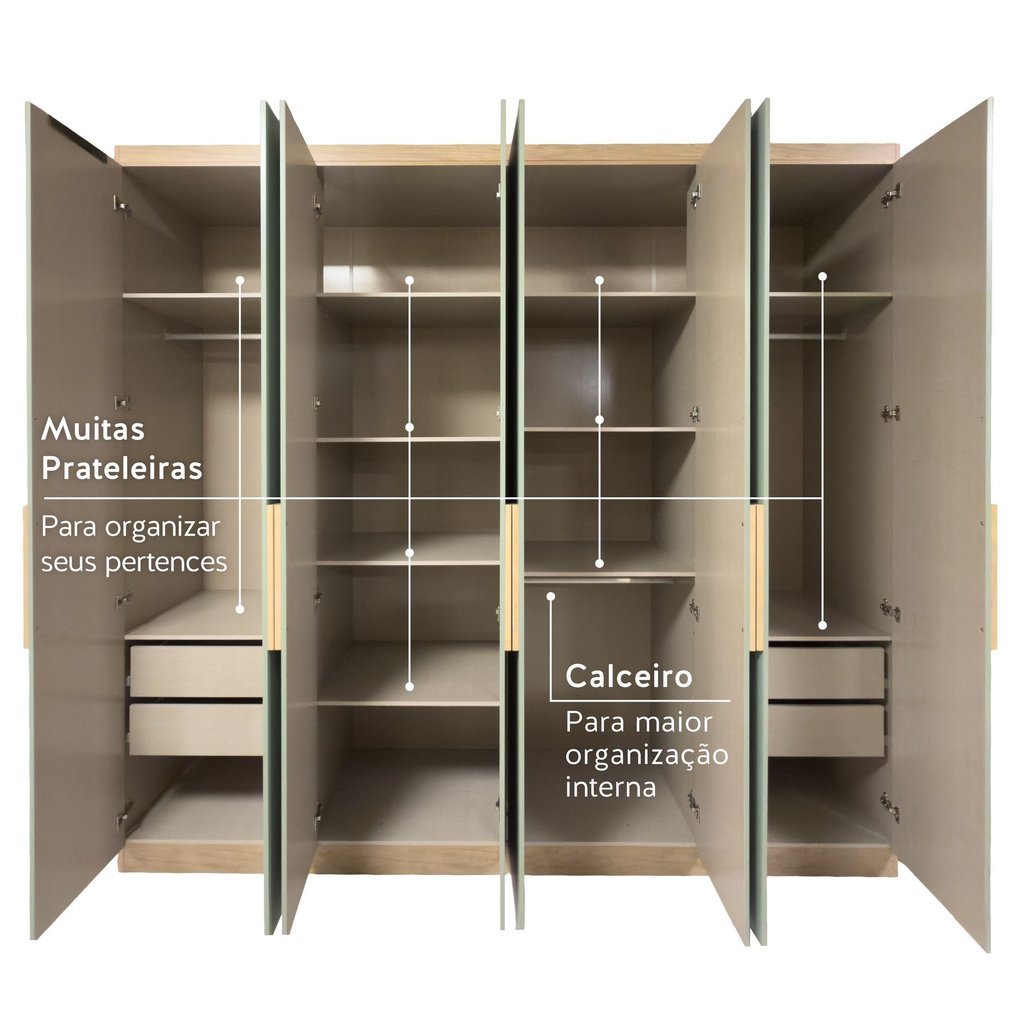 Guarda-roupa 8 Portas 240cm X 220cm X 47cm Milan Capuccino/Menta