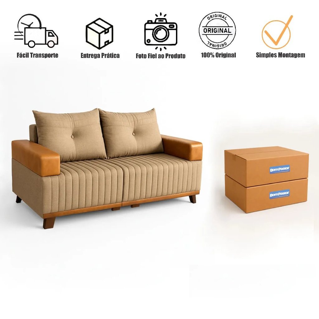 Sofá 3 Lugares 195cm Linho Aveludado Sienna 195