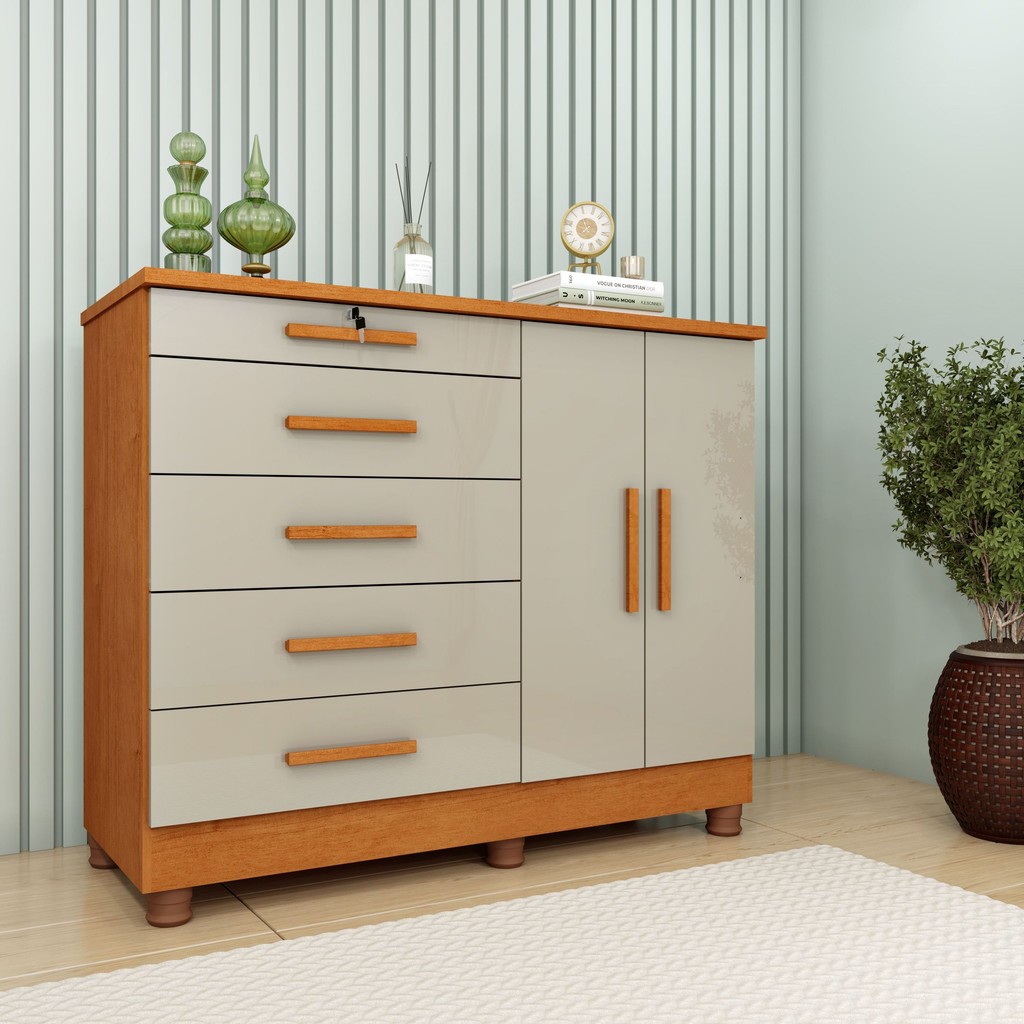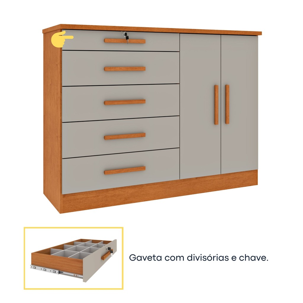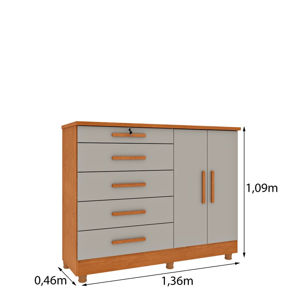 Cômoda 5 Gavetas 2 Portas com pés 136cm Istambul Cinamomo/Off White