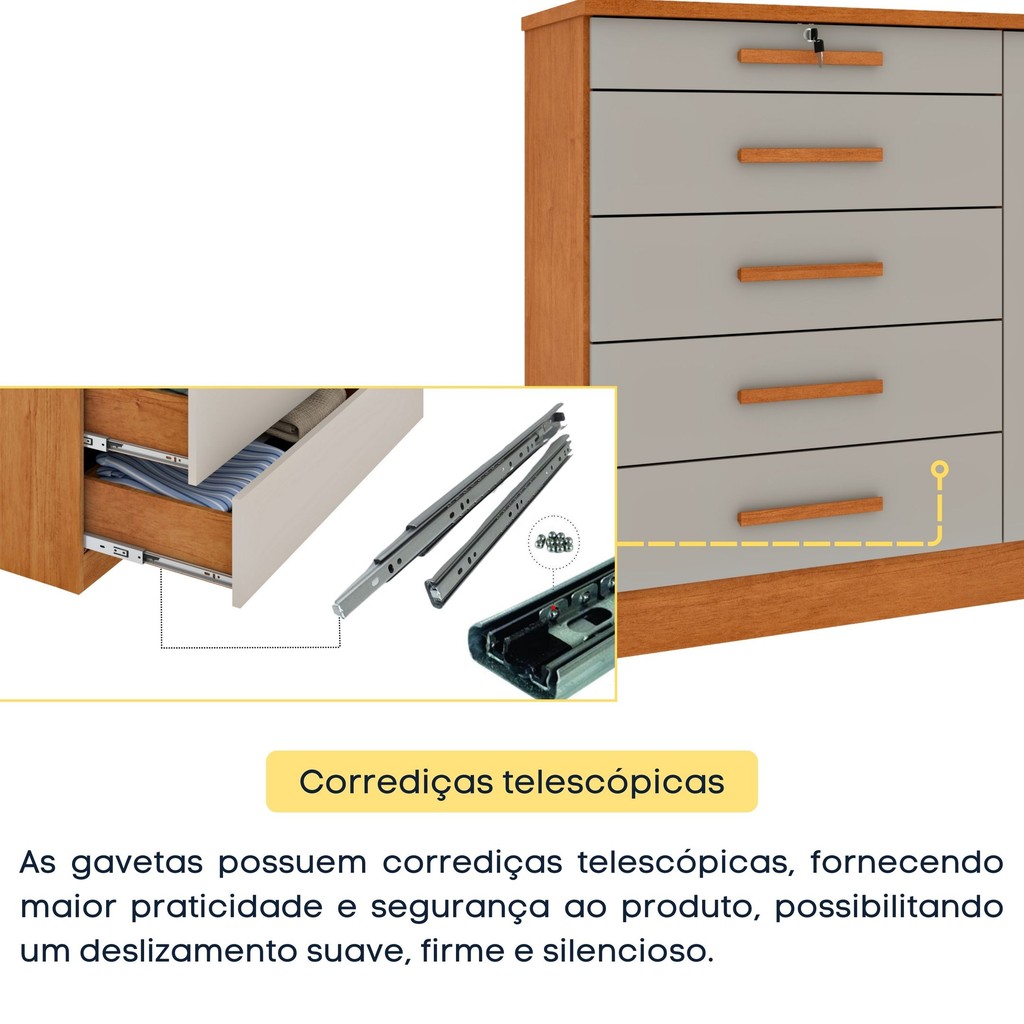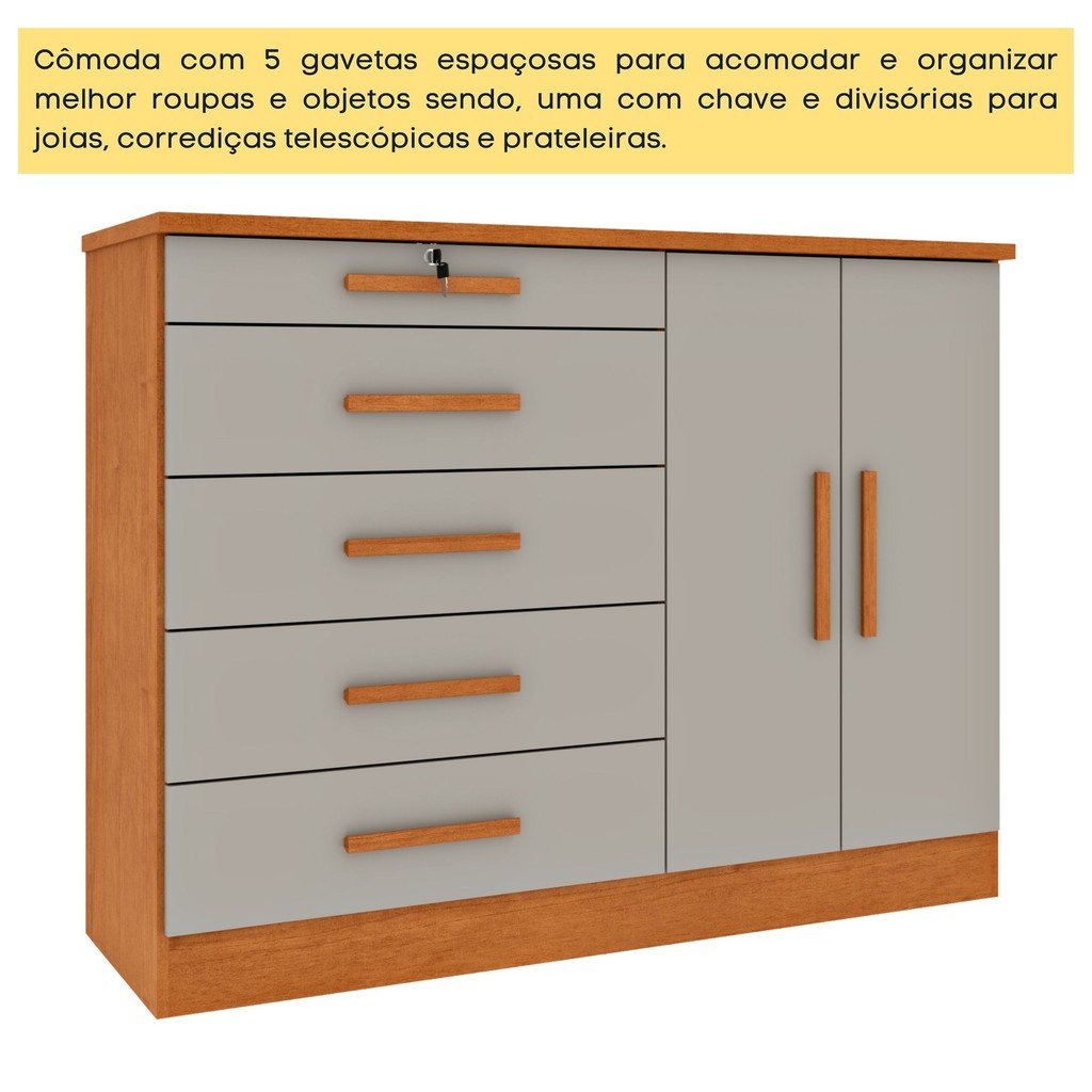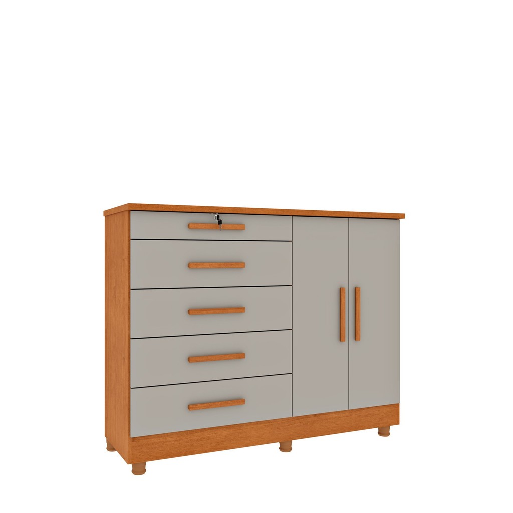 Cômoda 5 Gavetas 2 Portas com pés 136cm Istambul Cinamomo/Off White