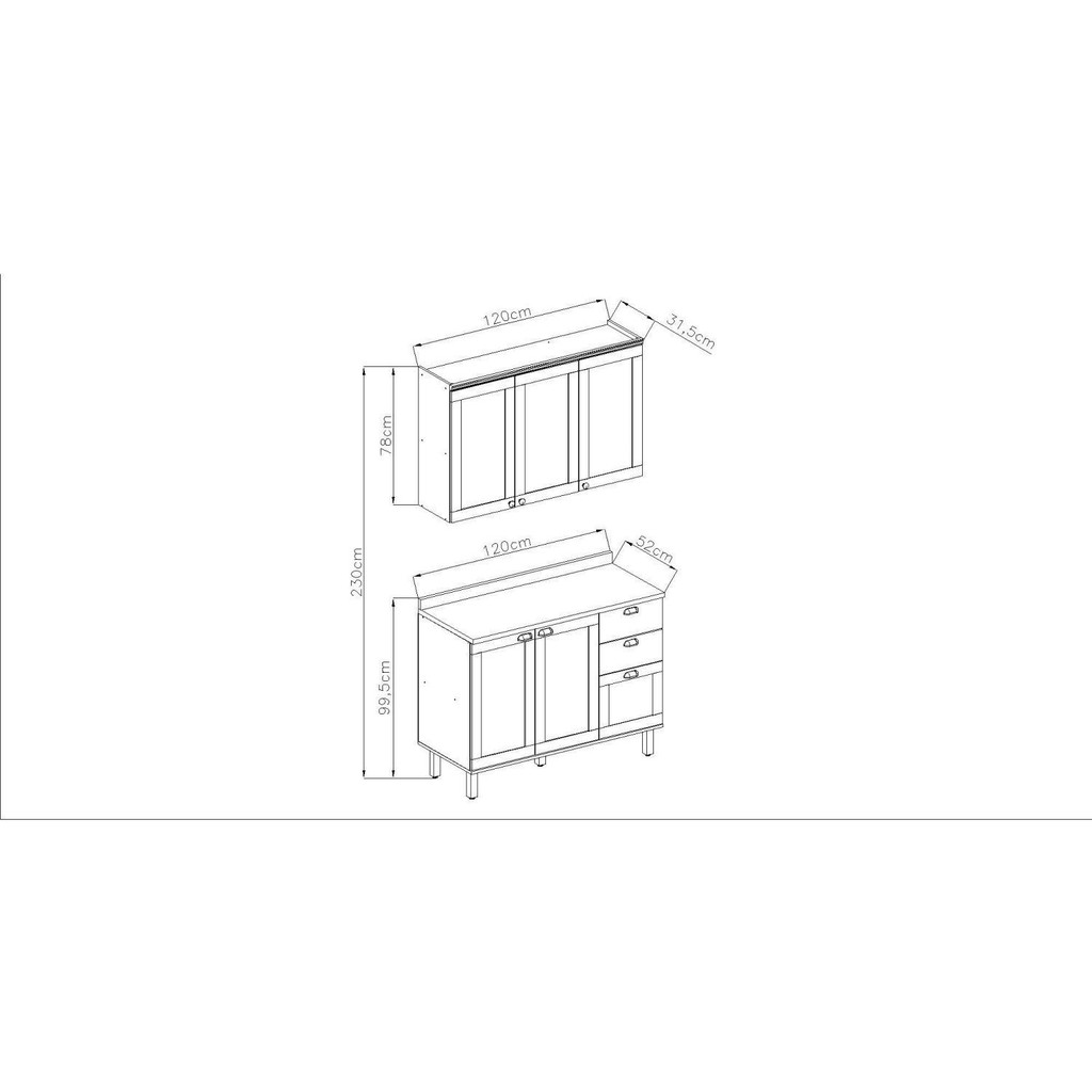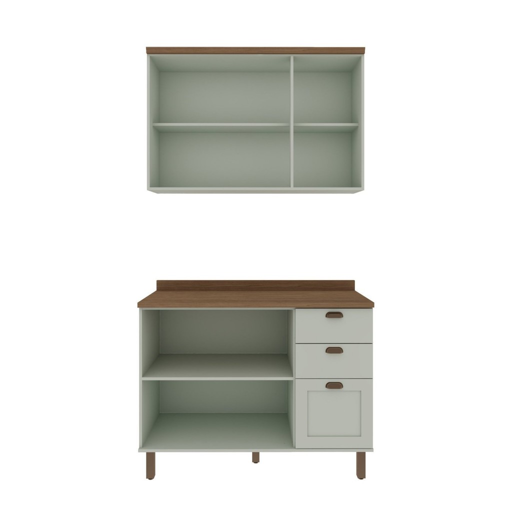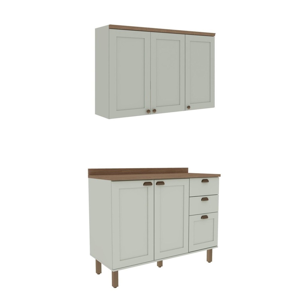 Cozinha Modulada 2 Peças com Balcão e Armário Aéreo e Tampo Provençal Verde Mint