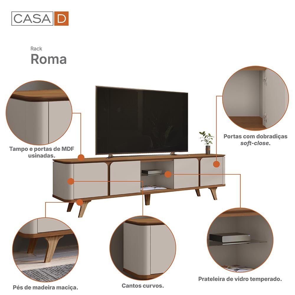 Rack para TV até 60 Polegadas 217cm Cantos Curvos e Pés Madeira Maciça Roma Cedro/Off White