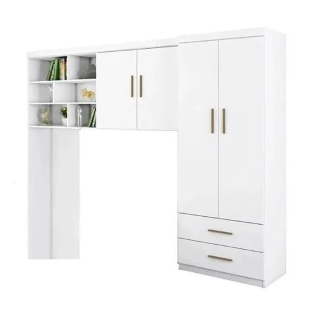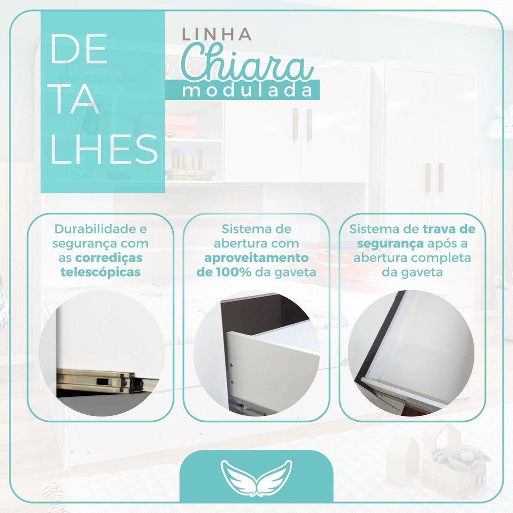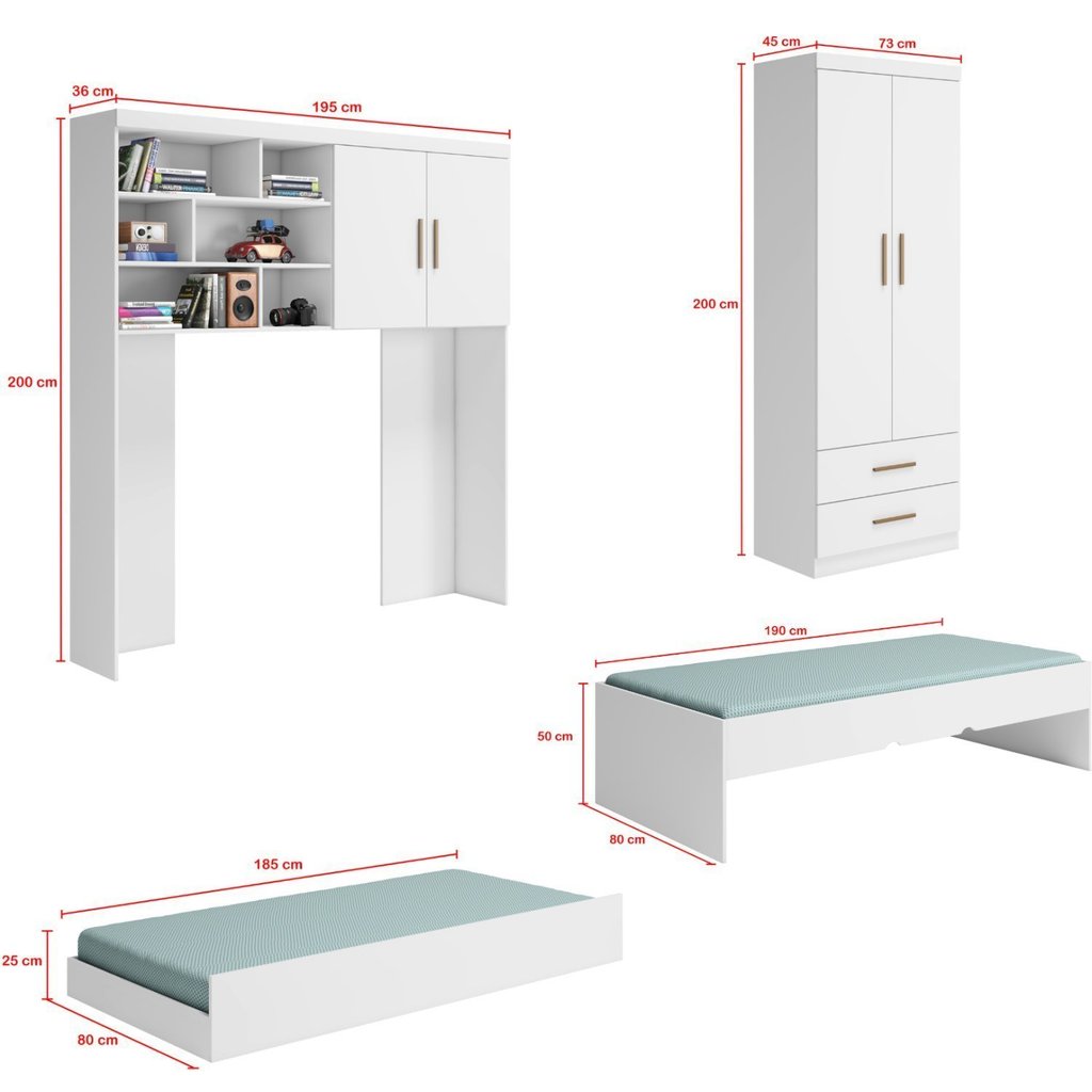 Quarto Completo Solteiro Juvenil 4 Peças com Guarda Roupa e Bicama Modulado Chiara Branco Branco