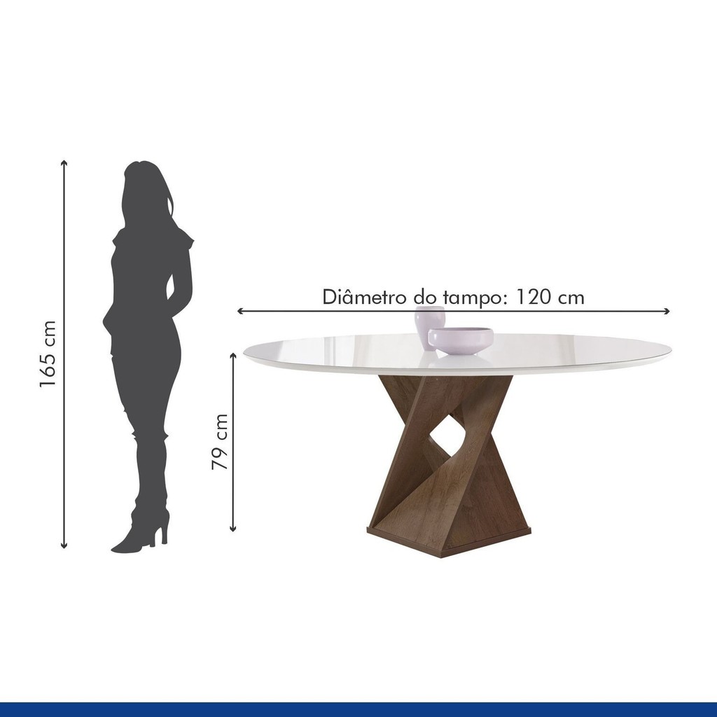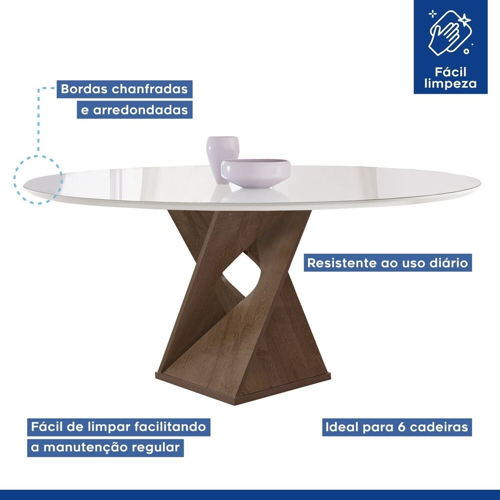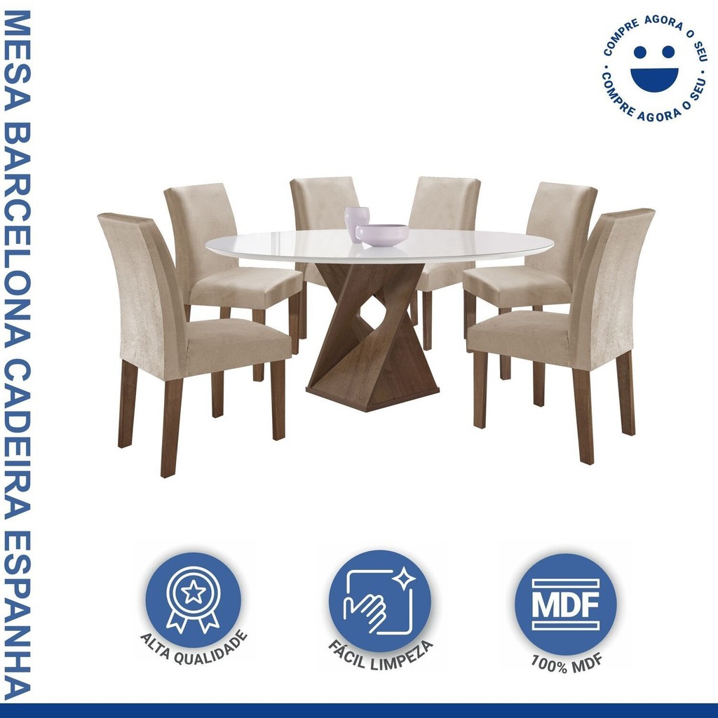 Conjunto Mesa Barcelona 120cmx120cm 6 Cadeiras Espanha Tampo Plus Redondo Vidro Yescasa Chocolate/Off White/Veludo Bege