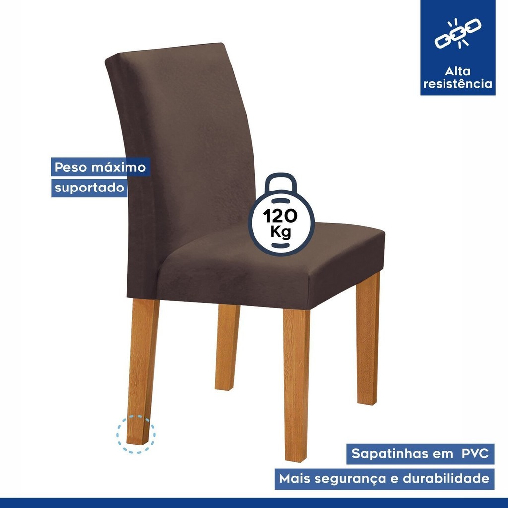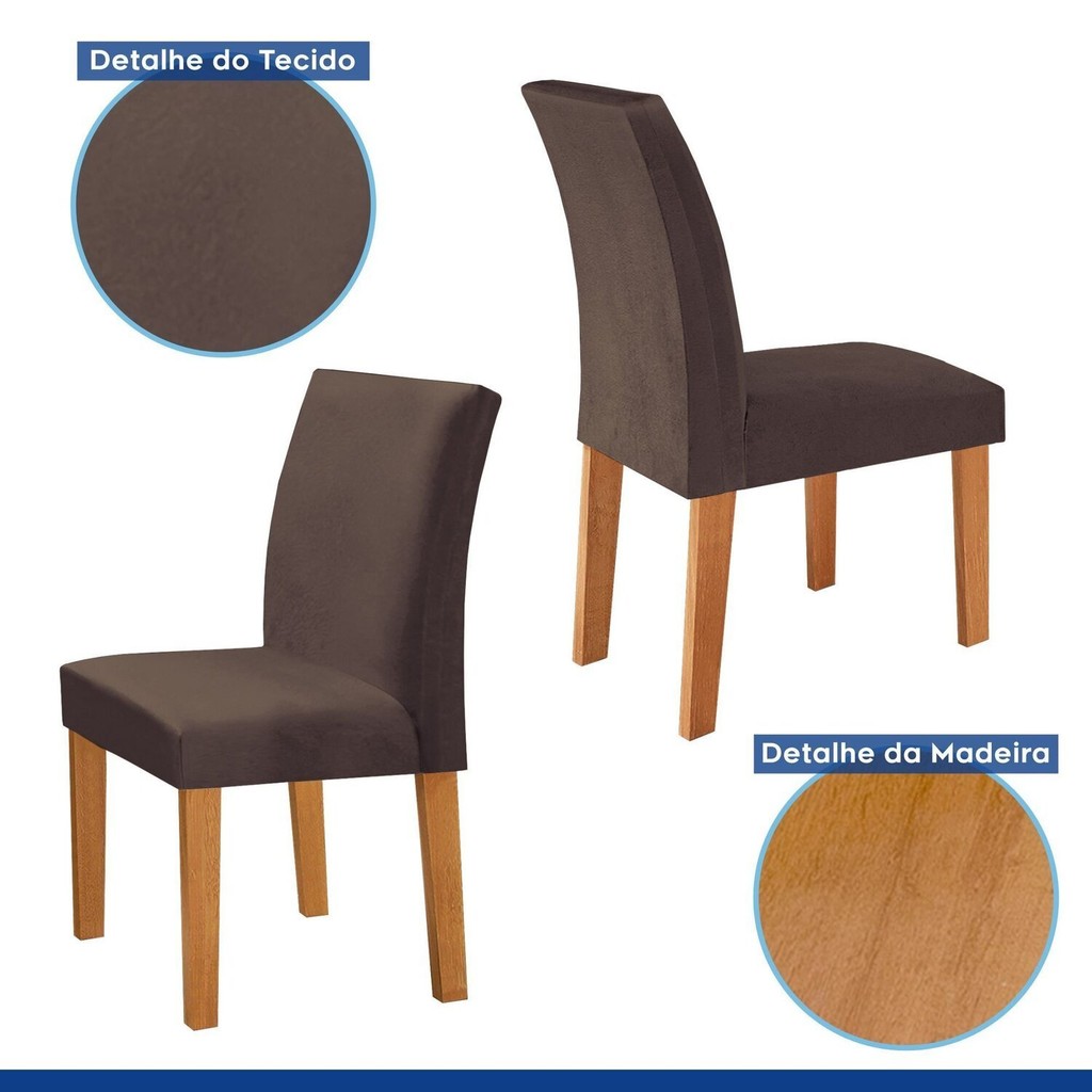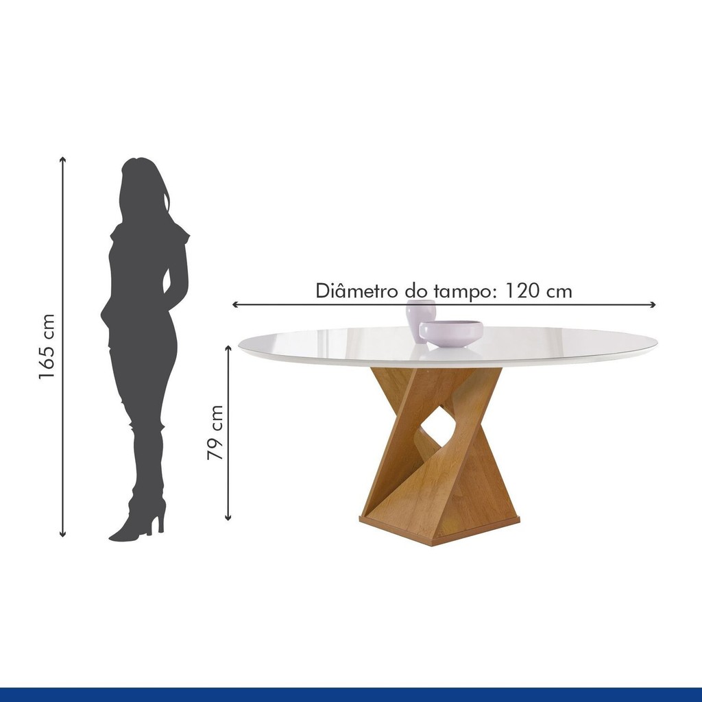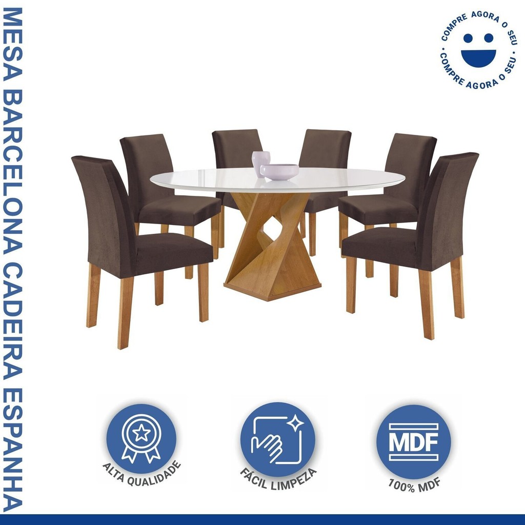 Conjunto Mesa Barcelona 120cmx120cm 6 Cadeiras Espanha Tampo Plus Redondo Vidro Yescasa Cinamomo/Off White/Veludo Marrom