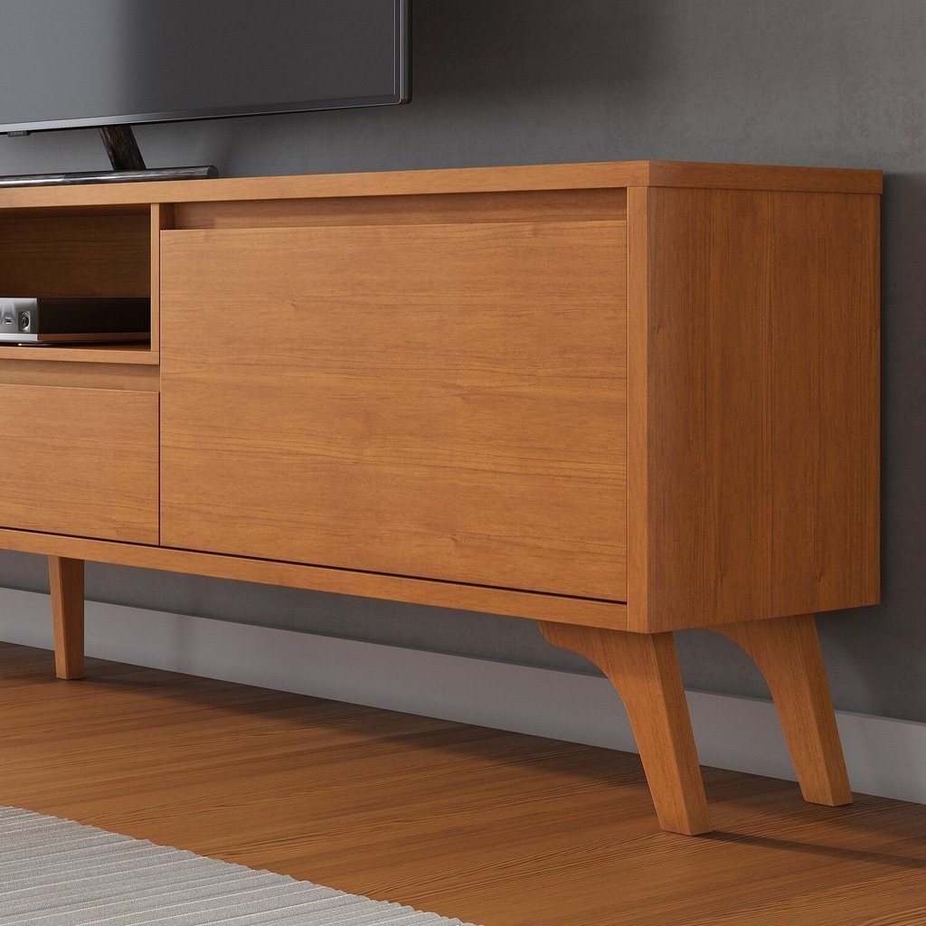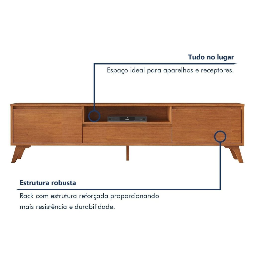 Rack para Tv até 75 Polegadas Pés Madeira Maciça Laqueado 237cm Piazza New Naturalle