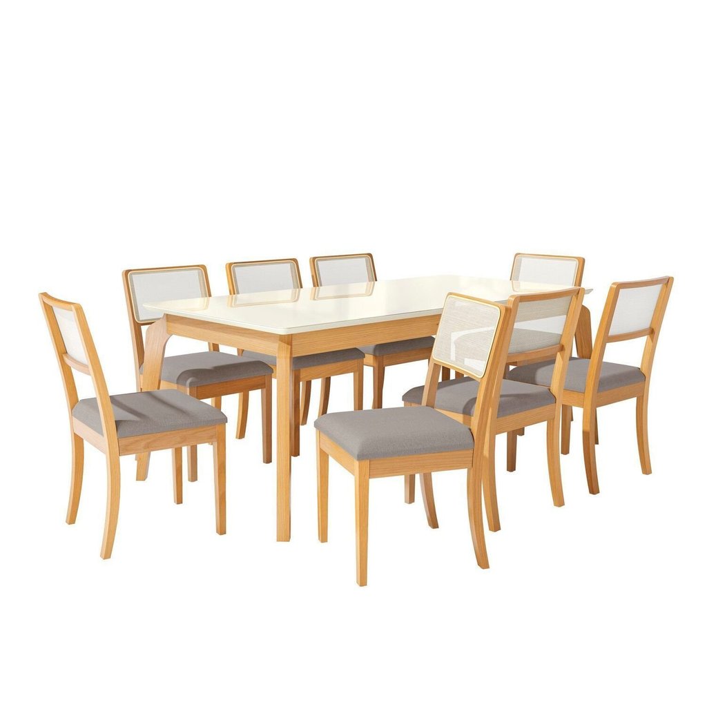 Conjunto para Sala de Jantar 8 Lugares Madeira Maciça com Tampo Vidro/MDF Petra Cinza