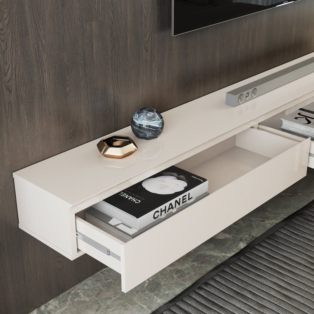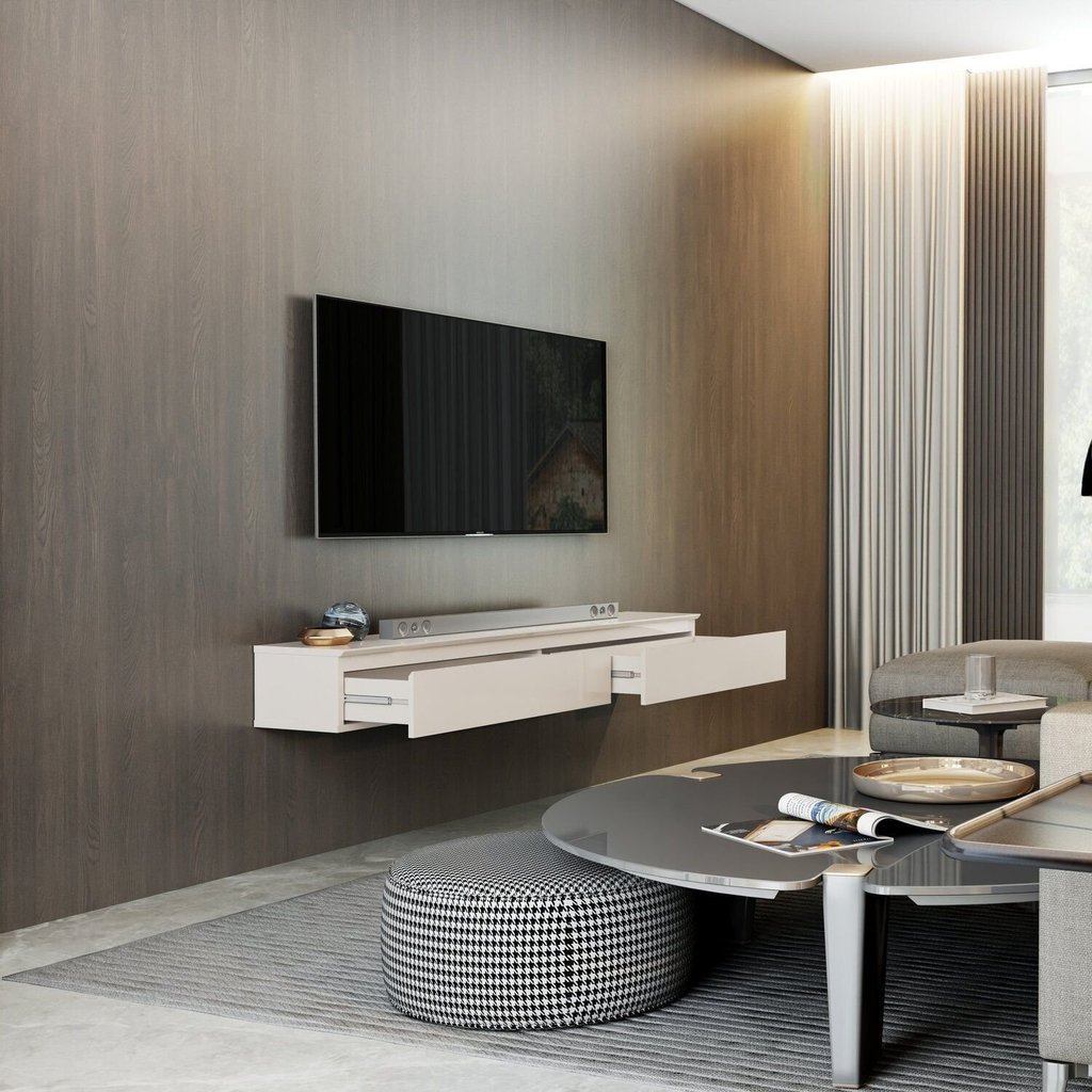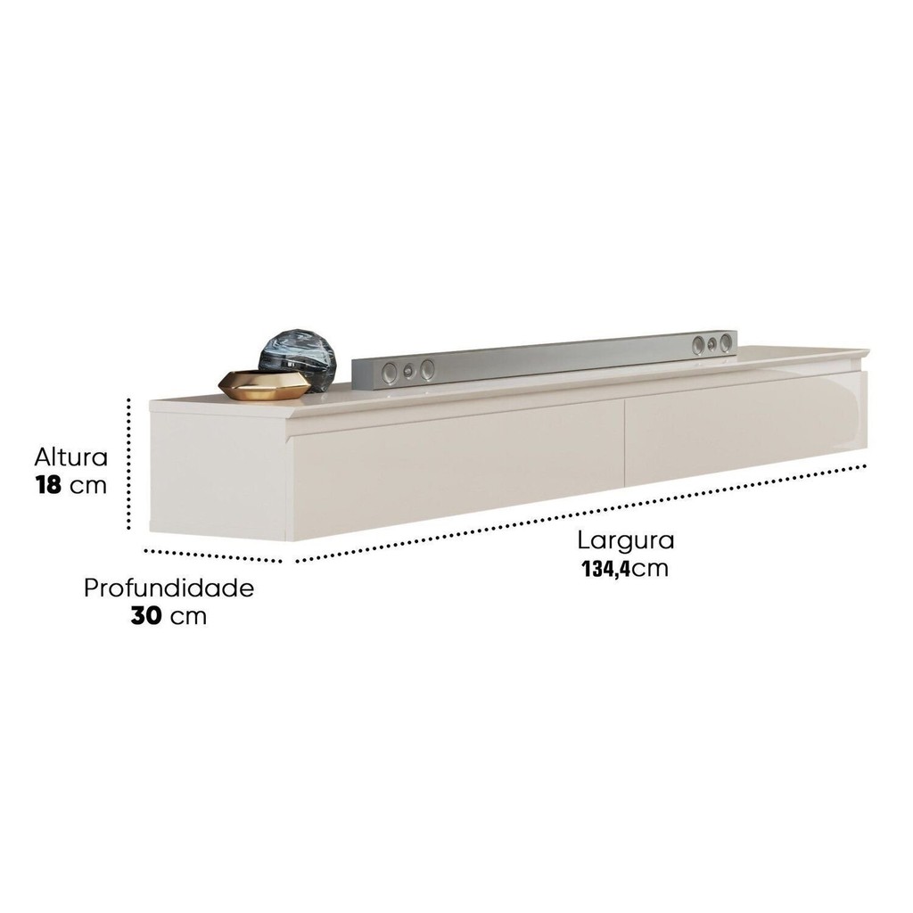 Rack em MDF Suspenso para Tv 55 Polegadas 2 Gavetas Aspen 1.35