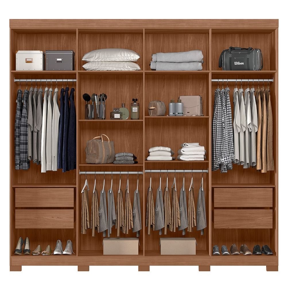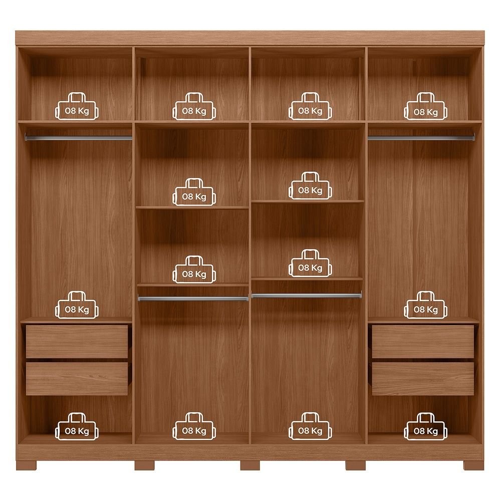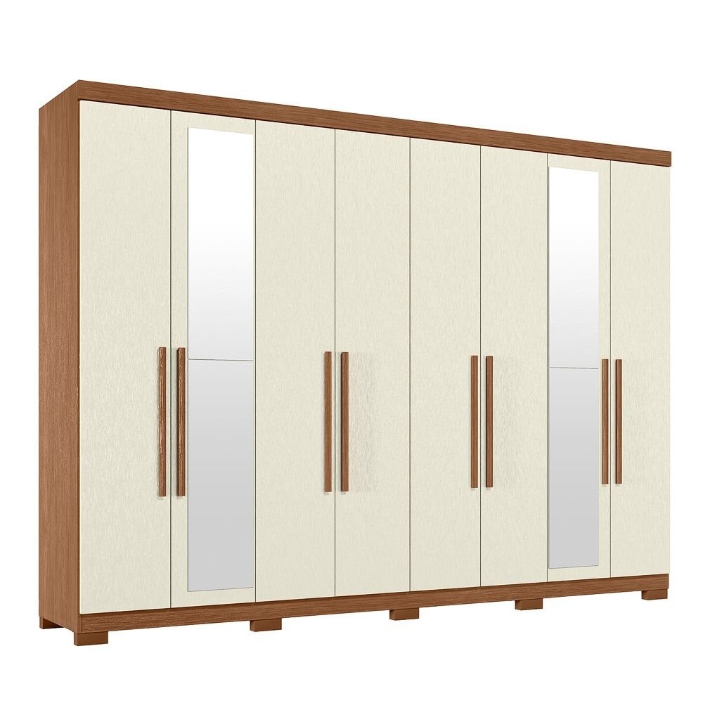 Guarda-roupa 8 Portas 4 Gavetas Master New com Espelho e Pés Jatoba/Areia