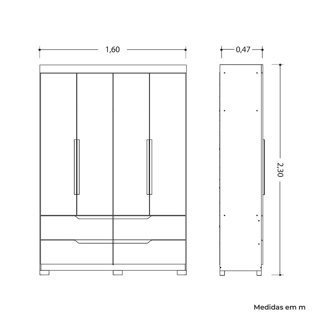 Guarda Roupa Infantil 4 Portas 4 Gavetas Circus Branco/Freijó