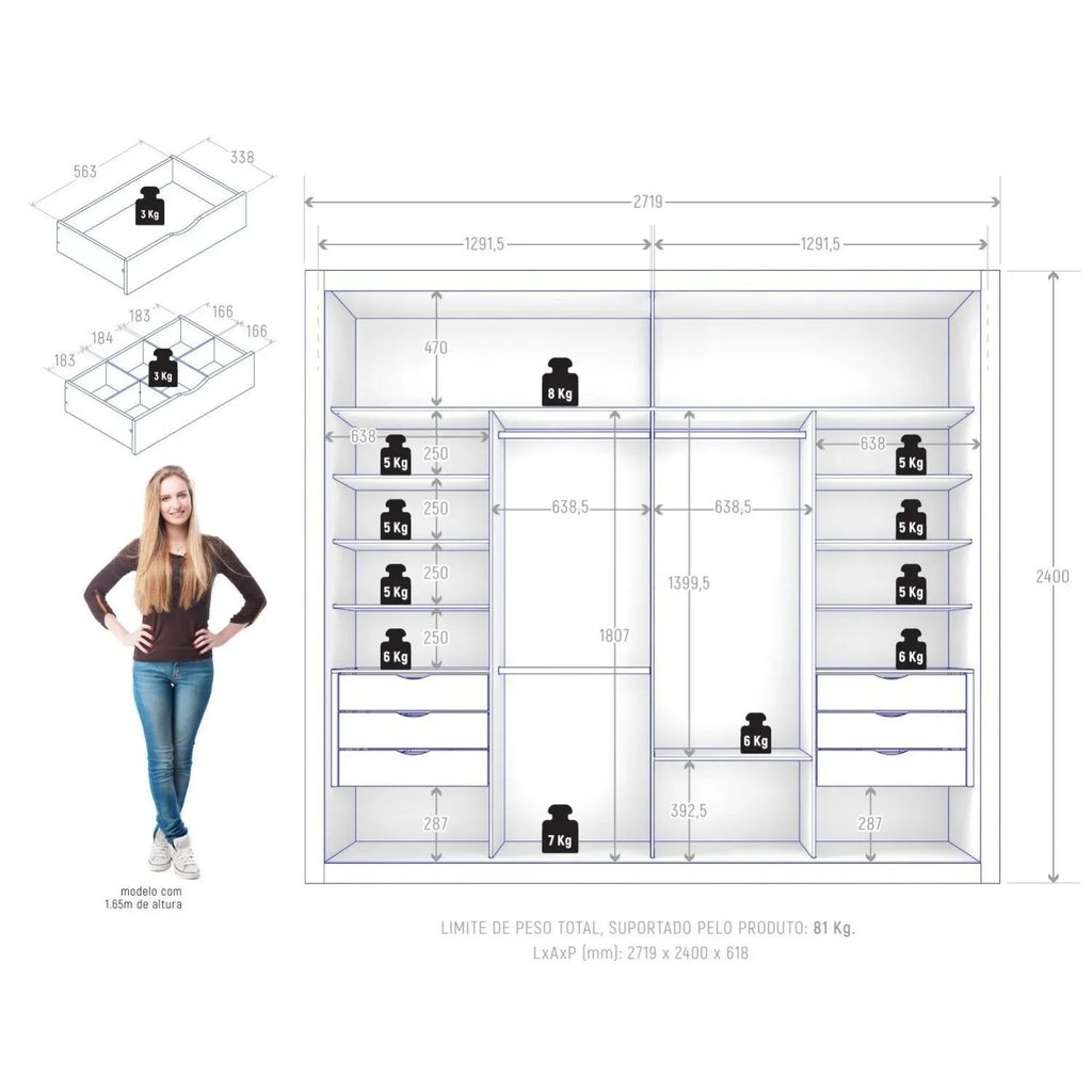 Guarda Roupa Casal Coliseu 2 Portas de Correr 6 Gavetas Cinamomo