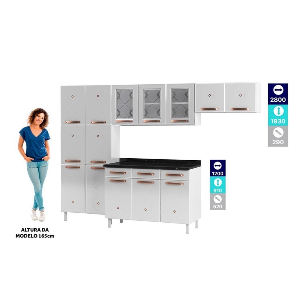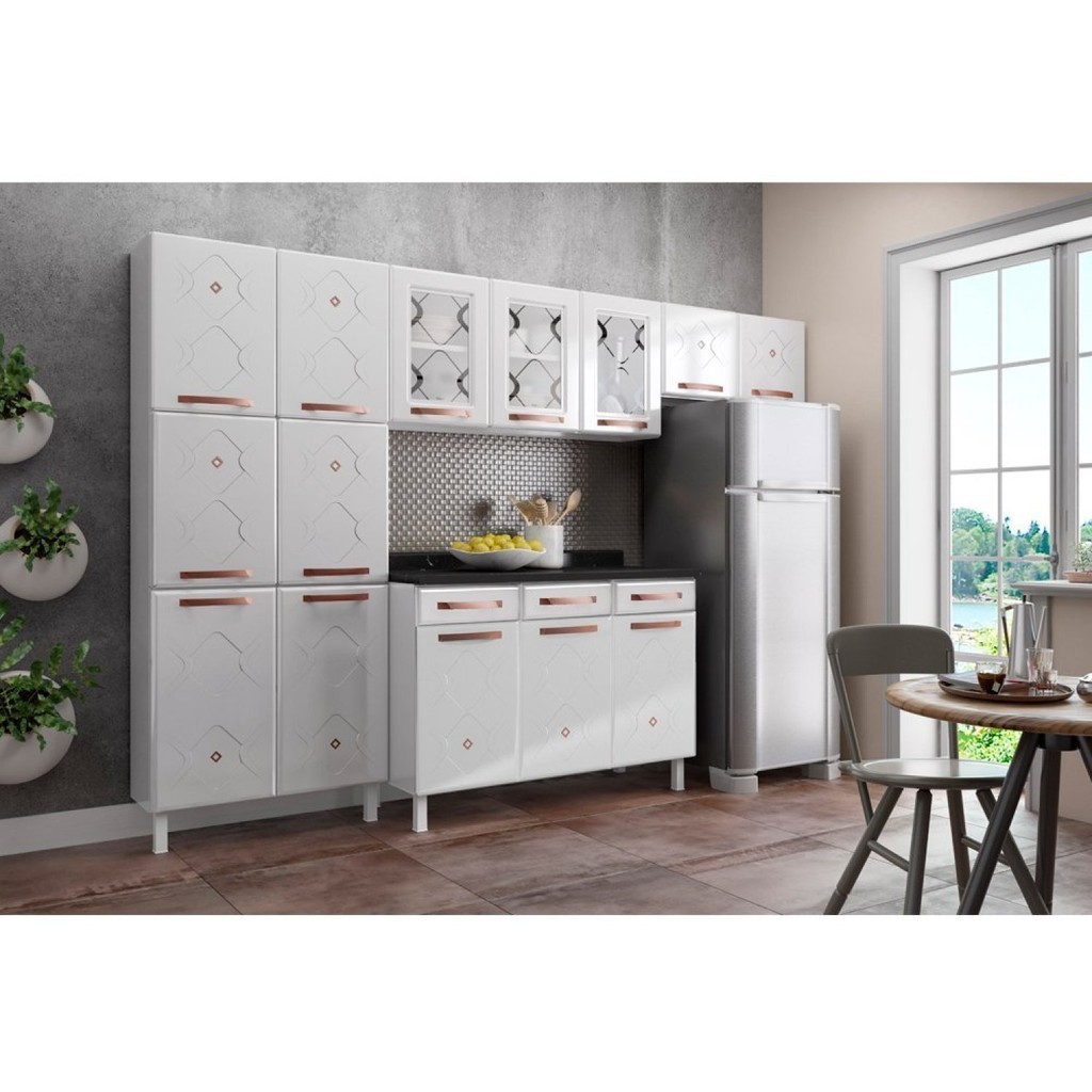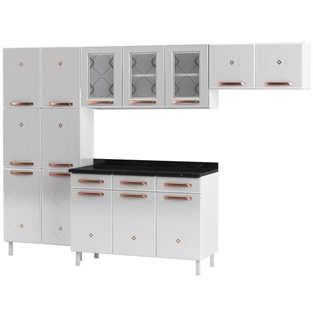 Cozinha Completa 14 Portas 2 Gavetas 3 Vidros Mirage New Branco