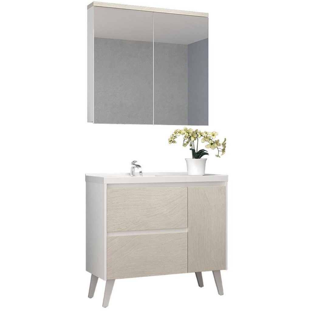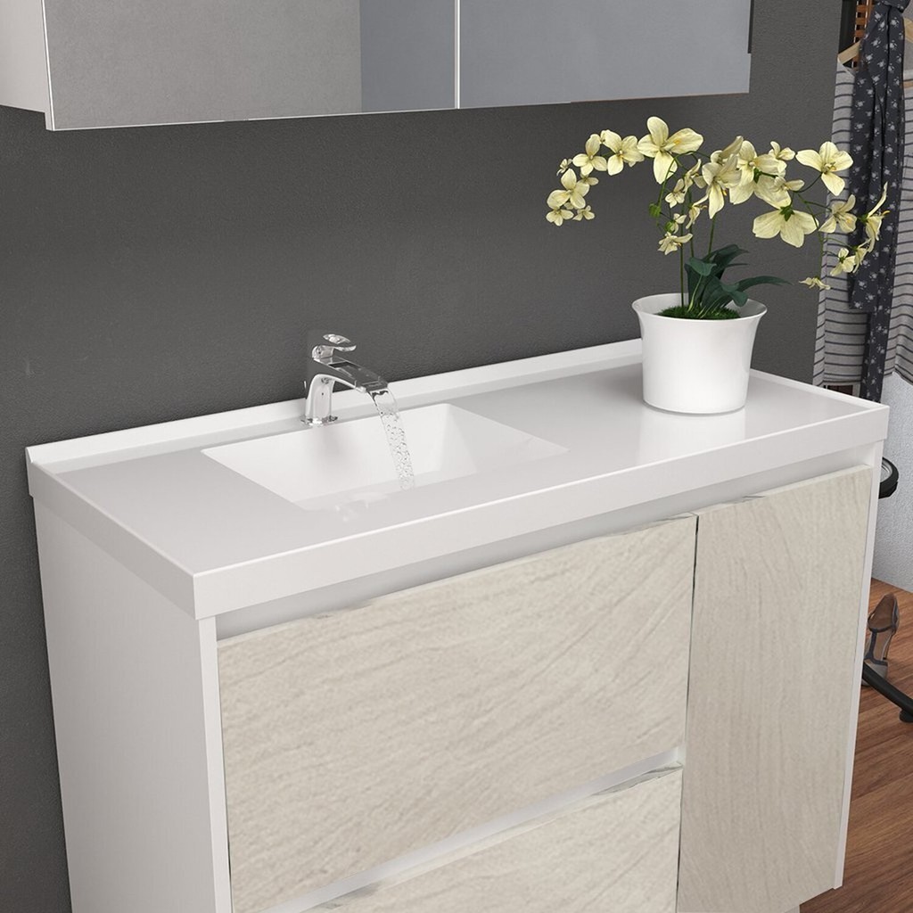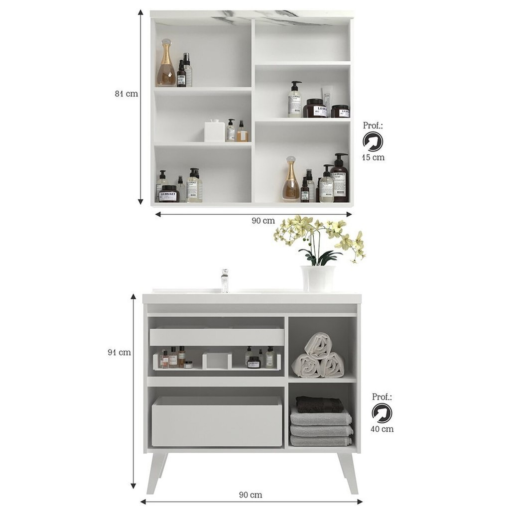 Gabinete de Banheiro 90cm com Lavatório e Armário Ref 910 Branco/Arenito