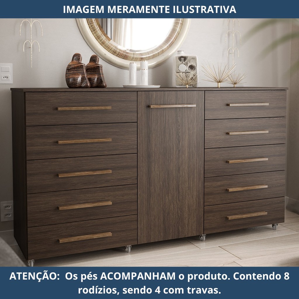 Cômoda 1 Porta 10 Gavetas com Rodízio Imperial Capuccino