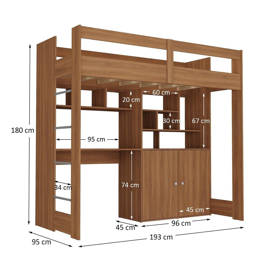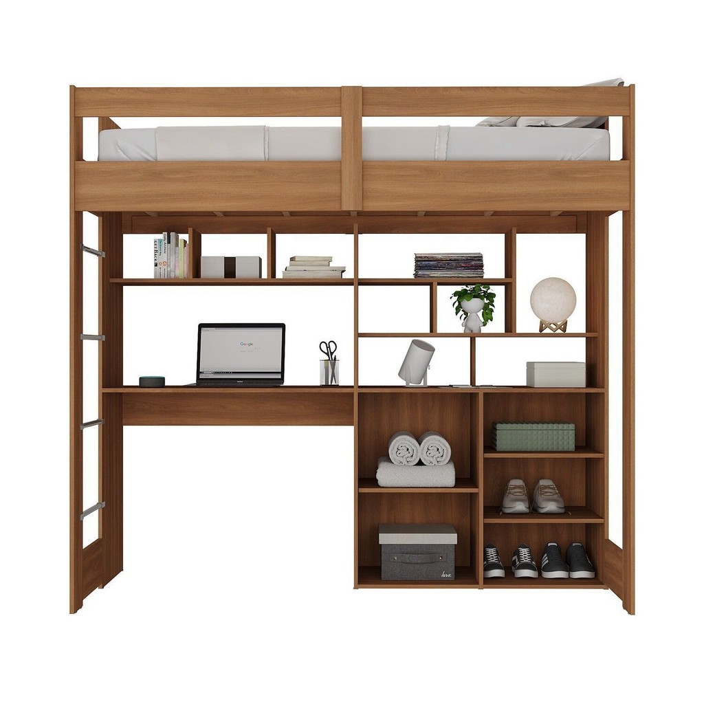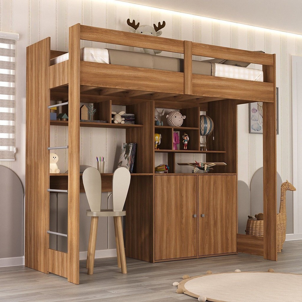 Cama Alta Infantil Juvenil 2 Portas com Escrivaninha Multifuncional Zwork Yescasa Nogal
