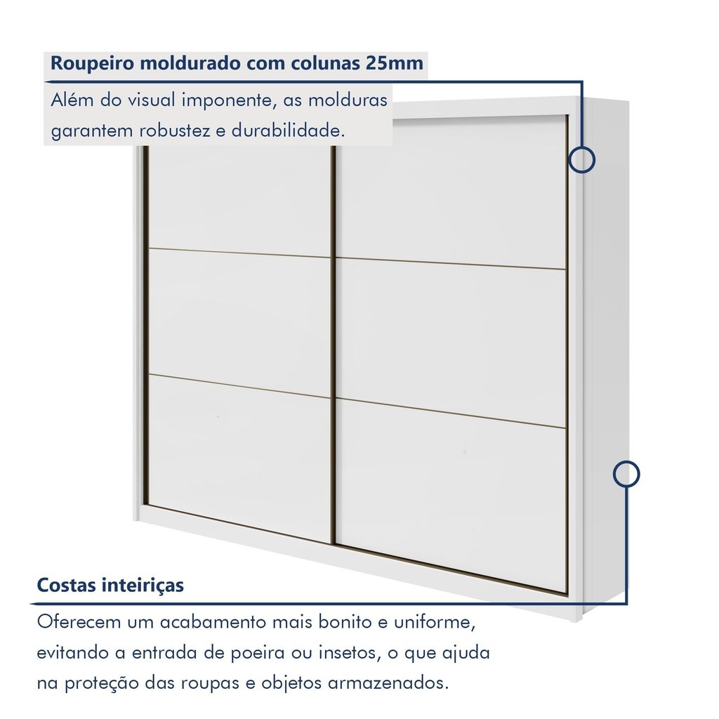 Guarda-roupa Casal 2 Portas de Correr 6 Gavetas Toronto Plus 100% MDF Branco UV