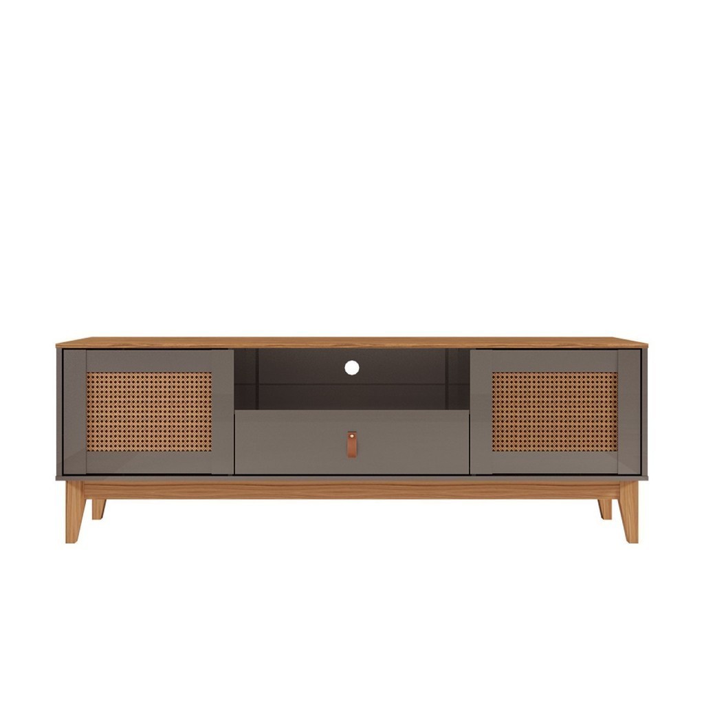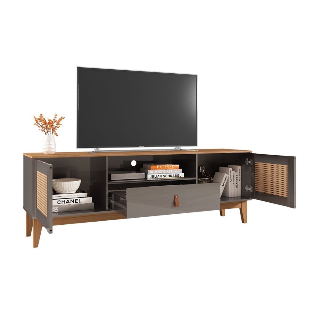 Rack para TV até 60 Polegadas Pés em Madeira Maciça 160cm Esmeralda Versátile Cinza Perola/Noce