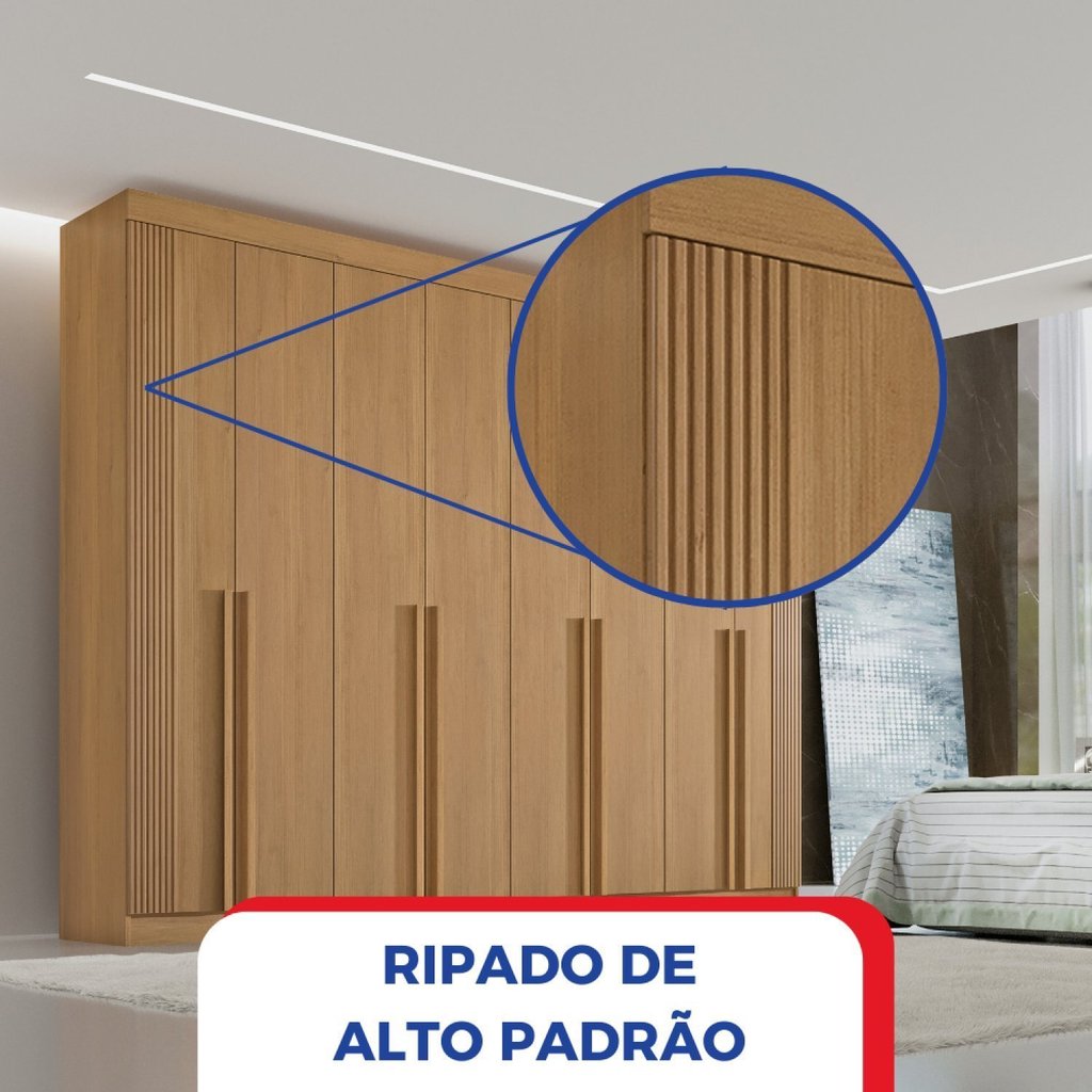 Guarda-roupa Casal MDF 08 Portas Império Ripado Cinamomo