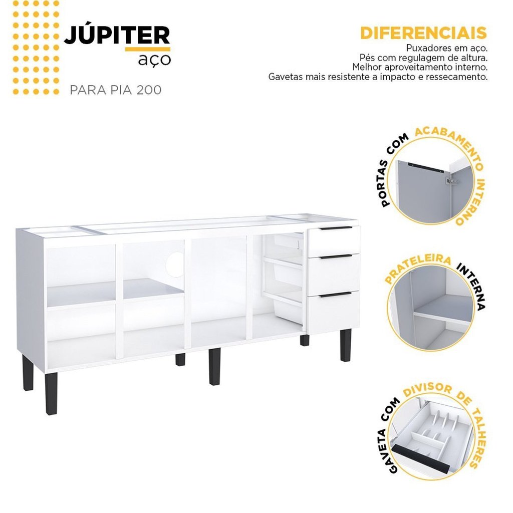 Balcão de Cozinha 4 Portas 3 Gavetas 192cm Júpiter