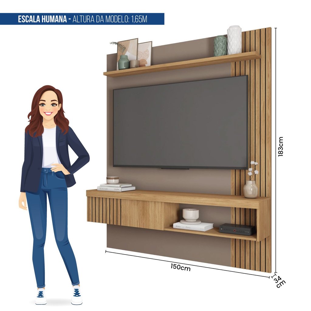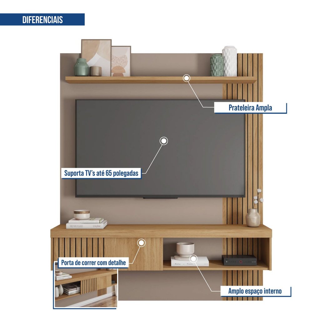 Painel para TV até 55 Polegadas com Ripado Moon Buriti/Fendi