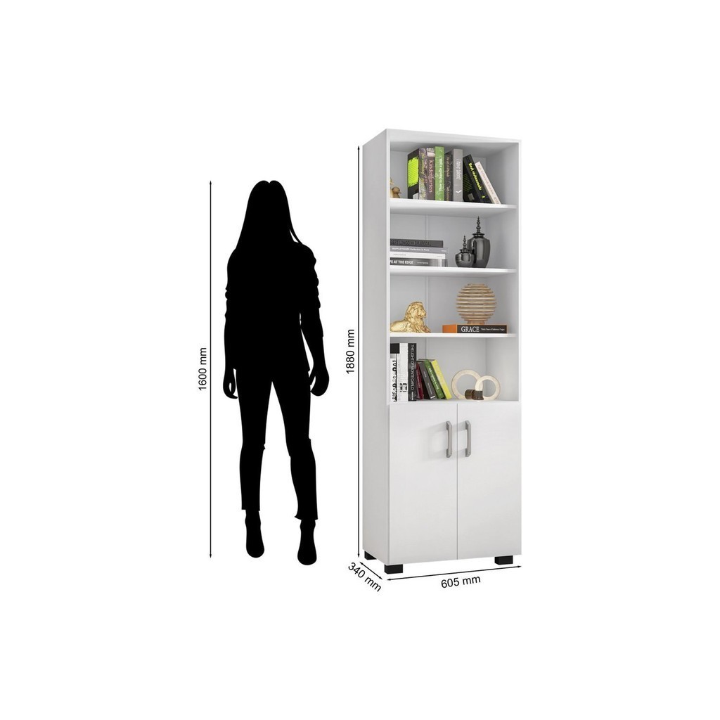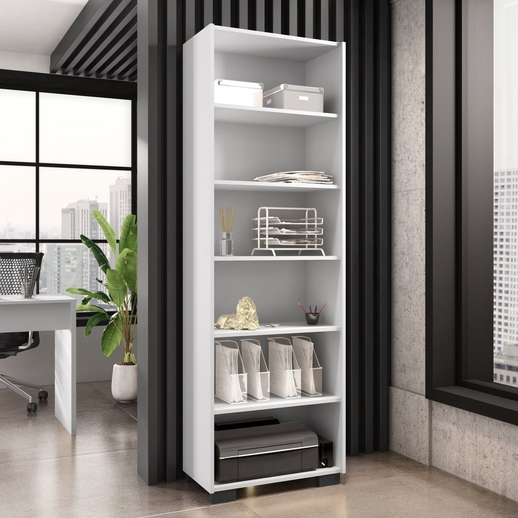 Armário Para Escritório Livreiro Aberto 2 Portas 5 Prateleiras Móveis Leão Branco