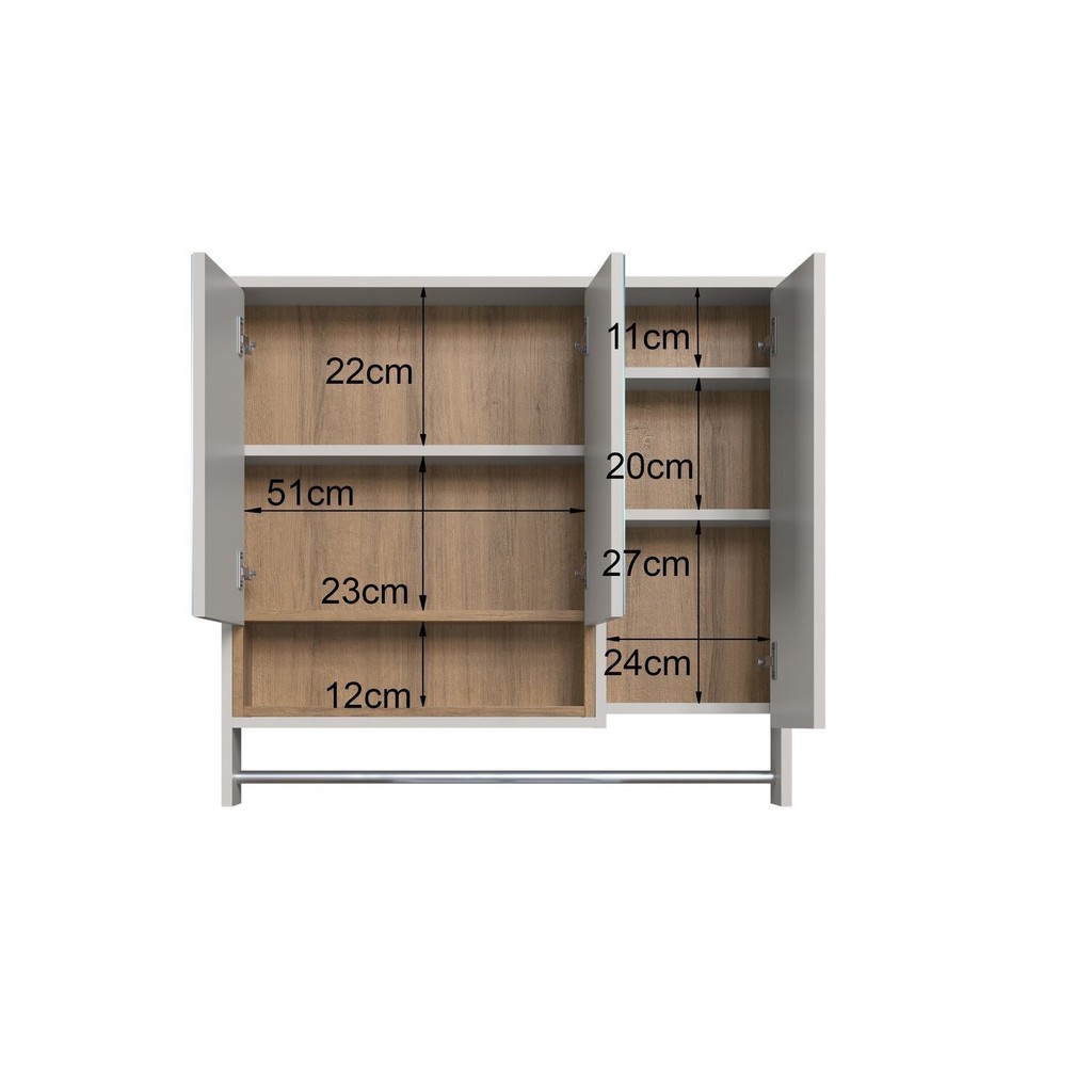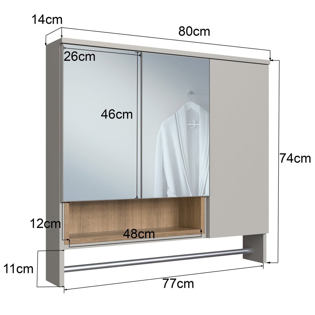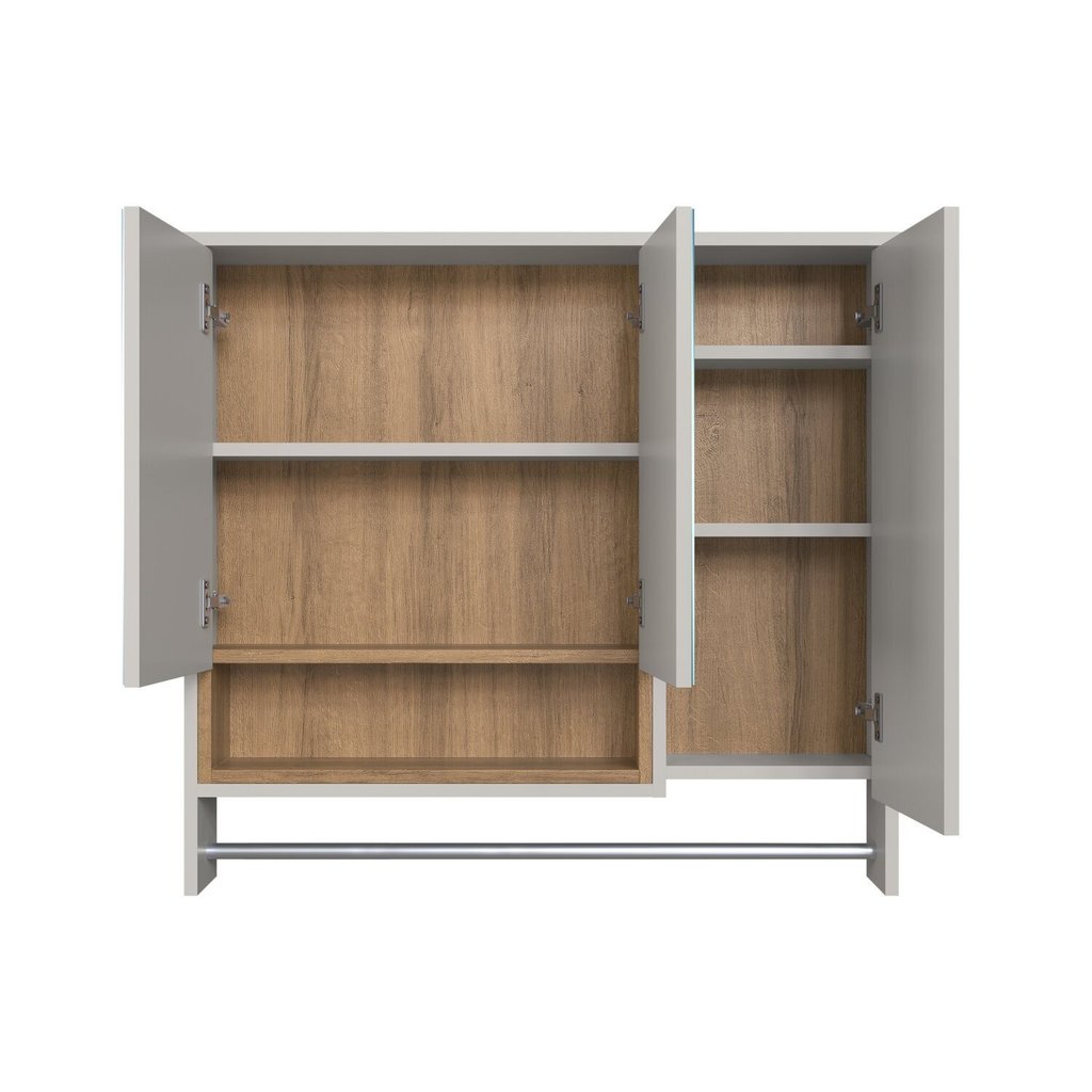 Armário Espelheira para Banheiro Olívia com 3 Portas, Um Nicho e Toalheiro Mel/Arenas
