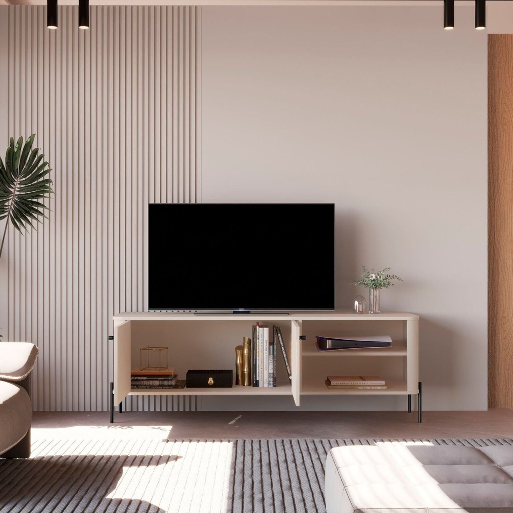 Rack para TV até 60 Polegadas Curvo Pés e Puxadores em Metal Tucupí Off White/Preto
