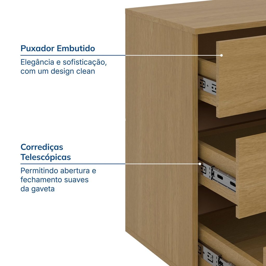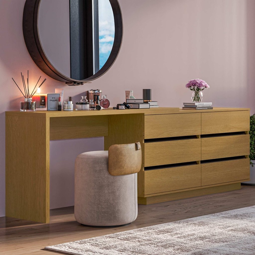 Escrivaninha em L ou Reta 140cm 6 Gavetas Oring CabeCasa MadeiraOriginals Carvalho