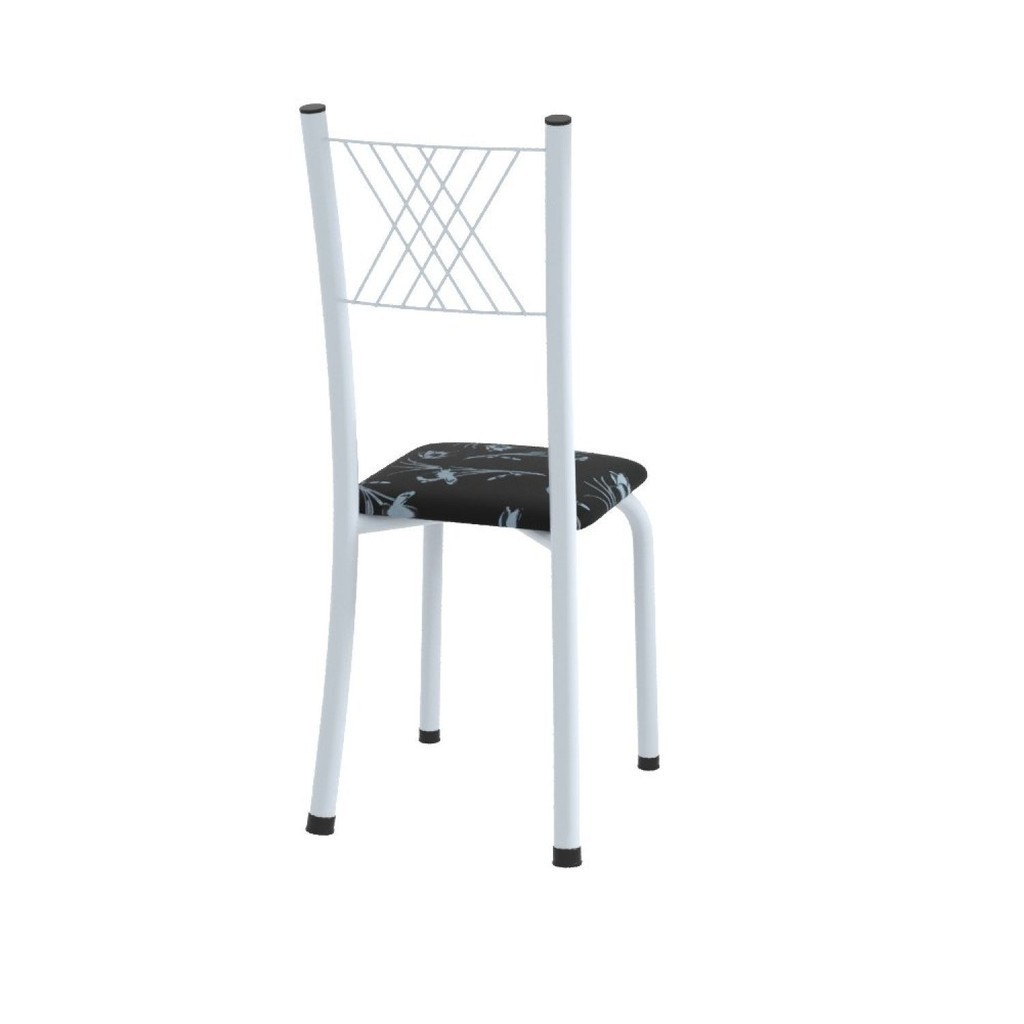 Conjunto de Jantar Mesa 70x70cm Tampo de Granito Topázio com 4 Cadeiras Sara Yescasa Branco/Preto Floral