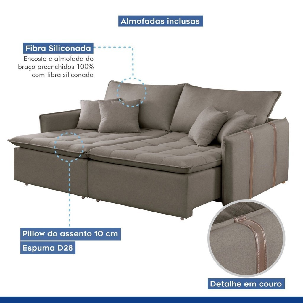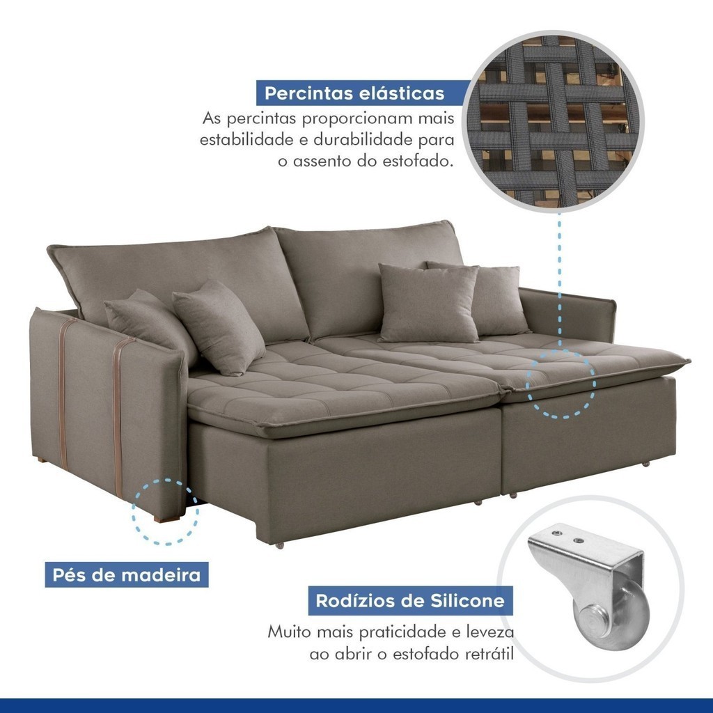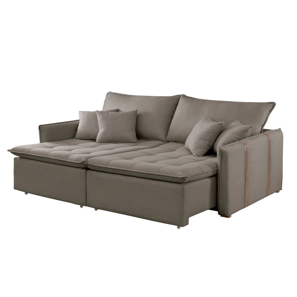 Sofá Cama 3 Lugares Retrátil 200cm Yescasa Veludo Bege Veludo Bege Escuro